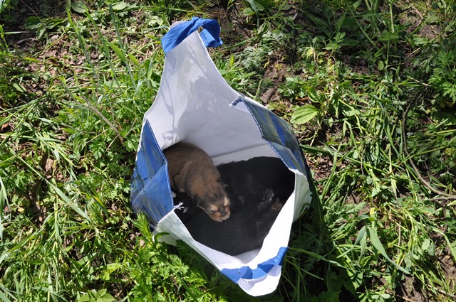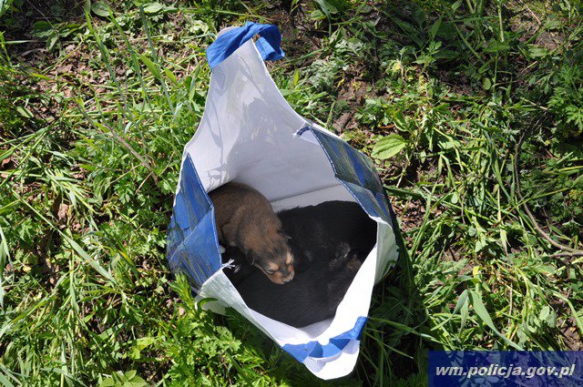 Lidzbark Warm.: Ktoś porzucił w foliowej torbie 4 szczeniaki. Policjanci szukają świadków zdarzenia