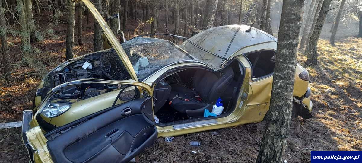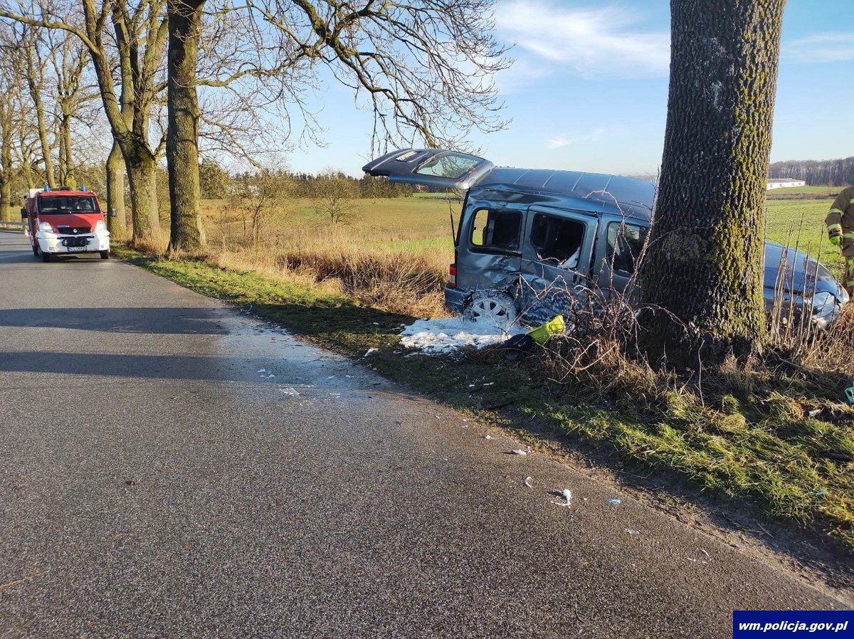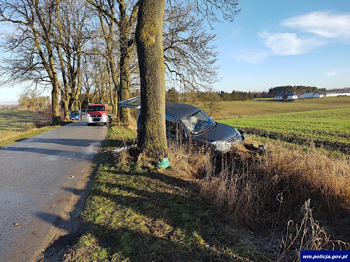 Natomiast 10 minut później 29-latka nie dostosowała prędkości do warunków panujących na drodze w wyniku czego wprowadziła pojazd w niekontrolowany poślizg i uderzyła w przydrożne drzewo. Kobieta z obrażeniami ciała została przetransportowana do szpitala.
