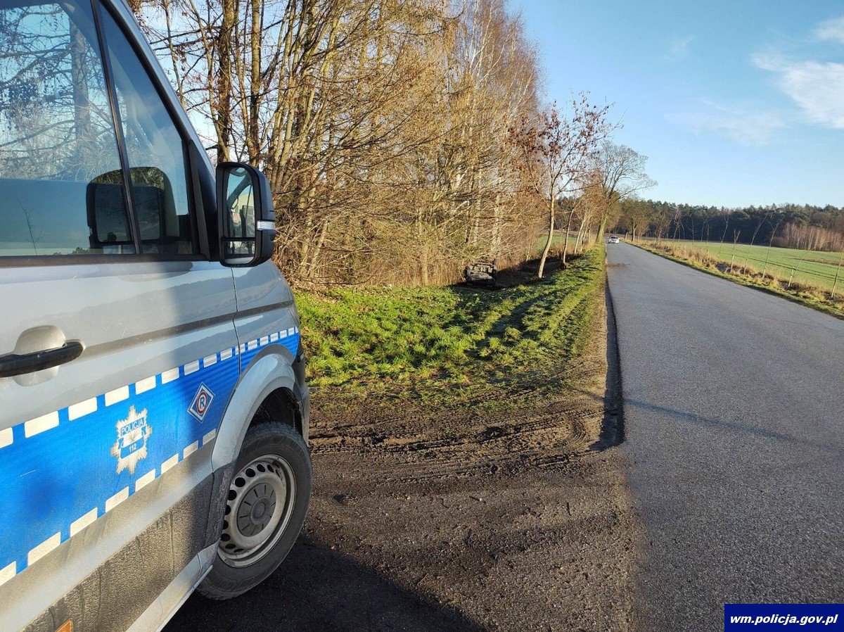 W wigilijne przedpołudnie (24.12.2022r.) na trasie Działdowo – Nidzica doszło do zdarzenia drogowego z udziałem kierującej pojazdem marki Toyota Yaris. Obecni na miejscu policjanci ruchu drogowego ustalili, że kierująca autem mieszkanka Olsztyna nie dostosowała prędkości do warunków panujących na drodze, straciła panowanie nad pojazdem i wjechała do przydrożnego rowu.