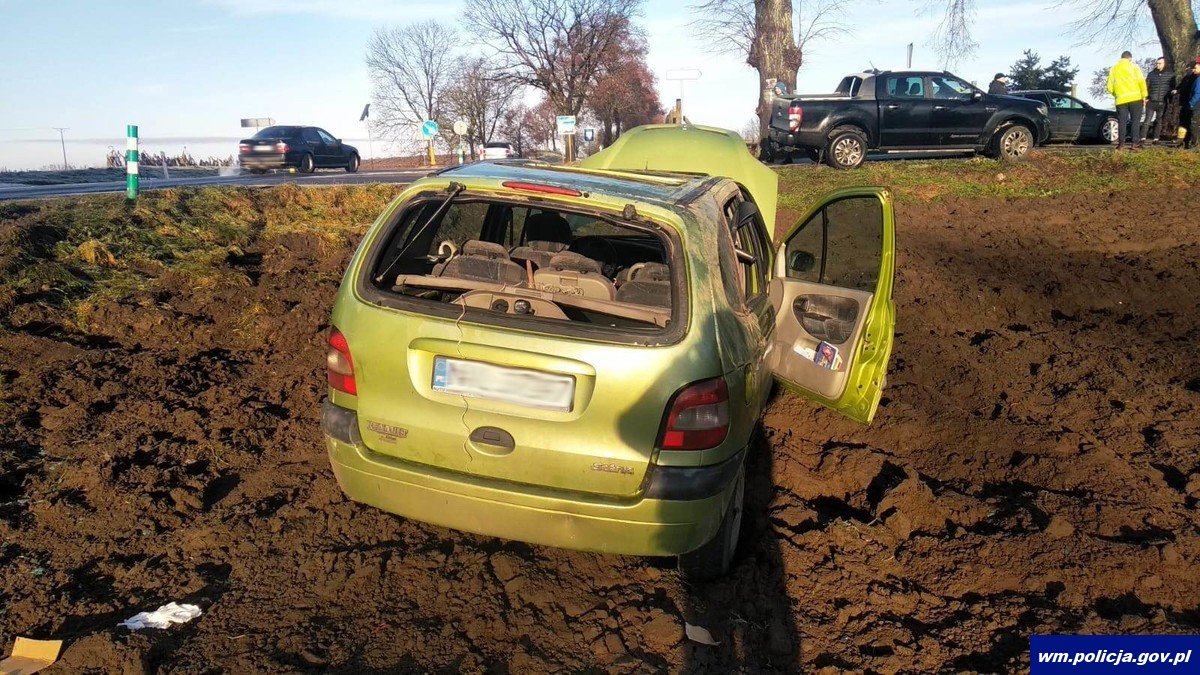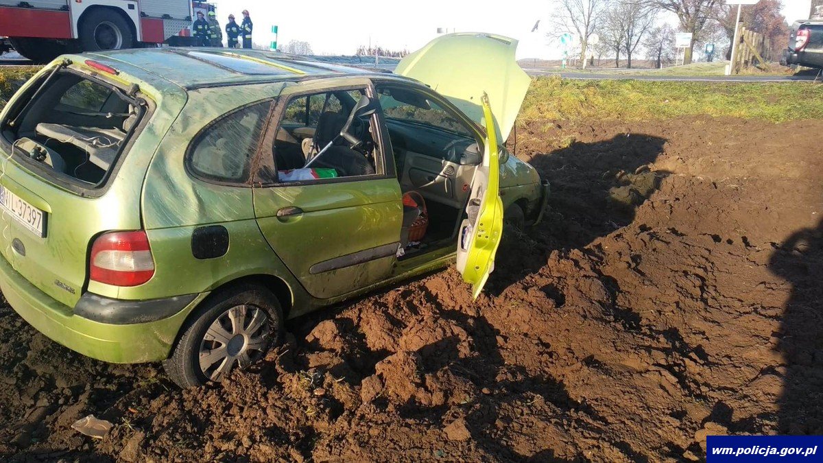 W wyniku zdarzenia 81-letni pasażer pojazdu z obrażeniami głowy został przewieziony karetką pogotowia do szpitala w Działdowie celem hospitalizacji.