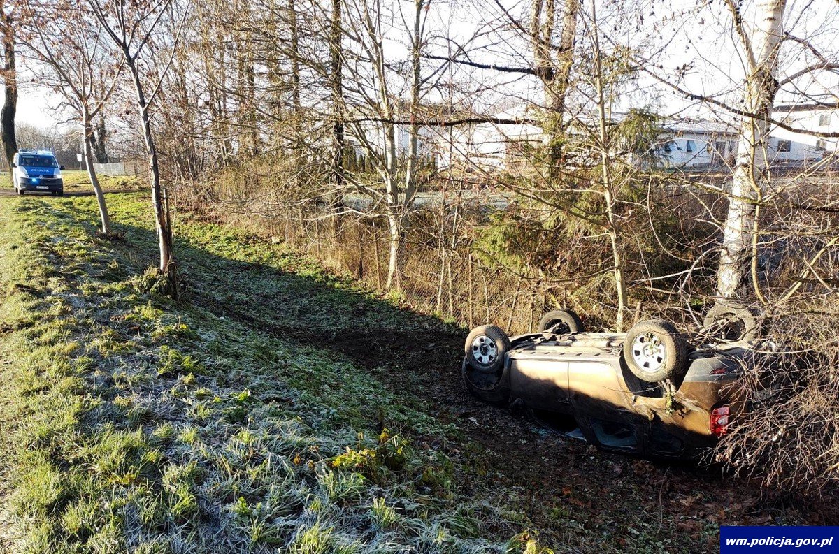 Tymczasem 41-latka kierująca dacią również nie dostosowała prędkości do warunków panujących na drodze w wyniku czego stracił panowanie nad pojazdem zjechała na przeciwległy pas ruchu a następnie na lewe pobocze po czym wywróciła pojazd. Nikomu nic poważnego się nie stało. Kobieta za popełnione wykroczenie została pouczona.
