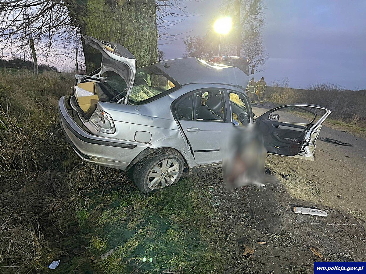 Do kolejnego tym razem najtragiczniejszego zdarzenia doszło we wtorek (27.12.2022 r.) kilka minut po godzinie 4:00. Oficer dyżurny został poinformowany o wypadku na trasie Susz-Kisielice. Funkcjonariusze natychmiast pojechali na miejsce. W trakcie czynności wstępnie ustalili, że 19-latek kierujący bmw nie dostosował prędkości do warunków ruchu w wyniku czego stracił panowanie nad pojazdem i uderzył w przydrożne drzewo. Mężczyzna w wyniku poniesionych obrażeń zmarł. Okazało się, że mężczyzna nie posiadał uprawnień do kierowania samochodem. Teraz policjanci pod nadzorem prokuratora ustalają dokładne okoliczności tego tragicznego zdarzenia.
