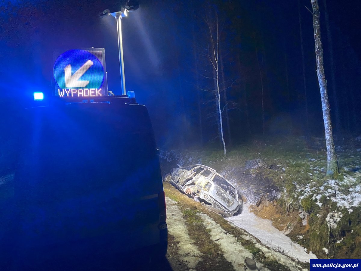Kolejnego dnia, w niedzielę (25.12.2022r.) po godzinie 17:00 do dyżurnego szczycieńskiej jednostki wpłynęło zgłoszenie dotyczące pożaru auta osobowego. Ze zgłoszenia wynikało, że samochód znajduje się w rowie i leży na boku. Skierowani na miejsce policjanci ustalili, że całkowitemu spaleniu uległ pojazd marki Audi. W pojeździe nikogo nie było. Mundurowi ustalili, że właścicielem pojazdu jest mieszkaniec powiatu ełckiego. Policjanci usunęli pojazd i zabezpieczyli go na parkingu strzeżonym. Straty oszacowano na kwotę 3 000 złotych. Szczycieńscy funkcjonariusze wyjaśniają okoliczności tego zdarzenia.