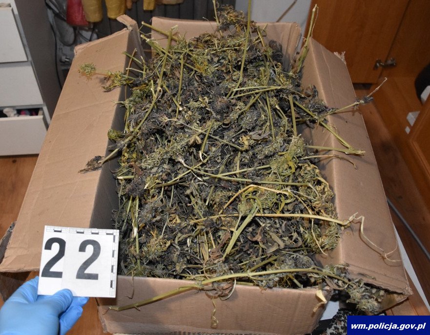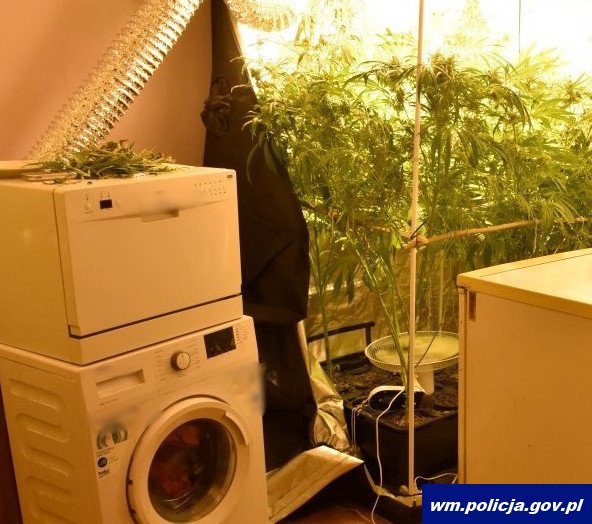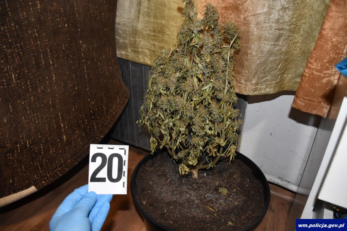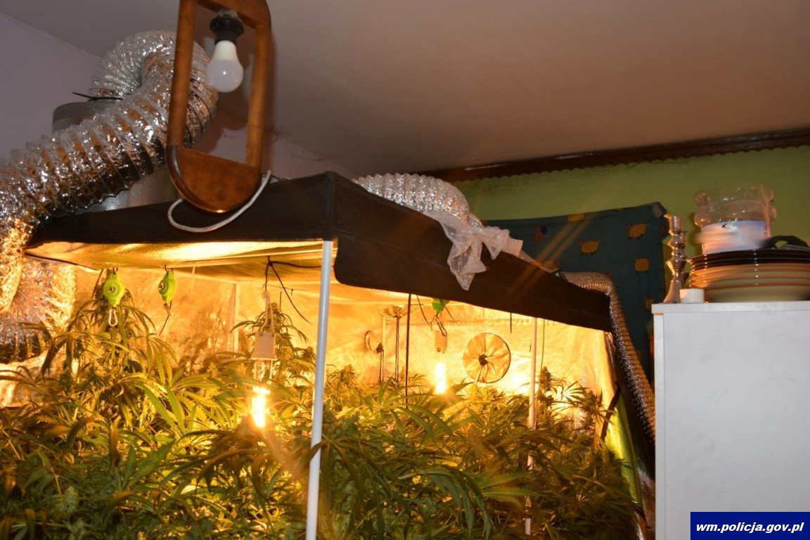 Na klatce schodowej i pod jego drzwiami wyczuwalna była charakterystyczna woń marihuany. Pomimo wielokrotnego pukania nikt nie otwierał drzwi. Funkcjonariusze nacisnęli klamkę. Drzwi były otwarte, więc weszli do środka, by sprawdzić, czy ktoś jest w mieszkaniu. Nikogo jednak nie było. Jakież było zaskoczenie policjantów, gdy w jednym z pomieszczeń zauważyli specjalistyczny namiot z aparaturą. W środku rosło co najmniej 11 dorodnych krzaków konopi indyjskich wysokości około 120 cm. W różnych miejscach w mieszkaniu leżały znaczne ilości suszu roślinnego, m.in. na zmywarce, na mikrofalówce, w szafkach, a nawet w opakowaniach po płytach.
