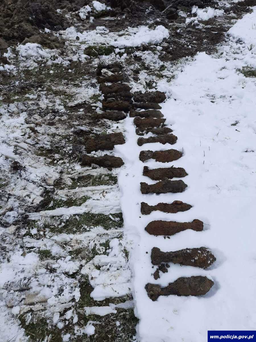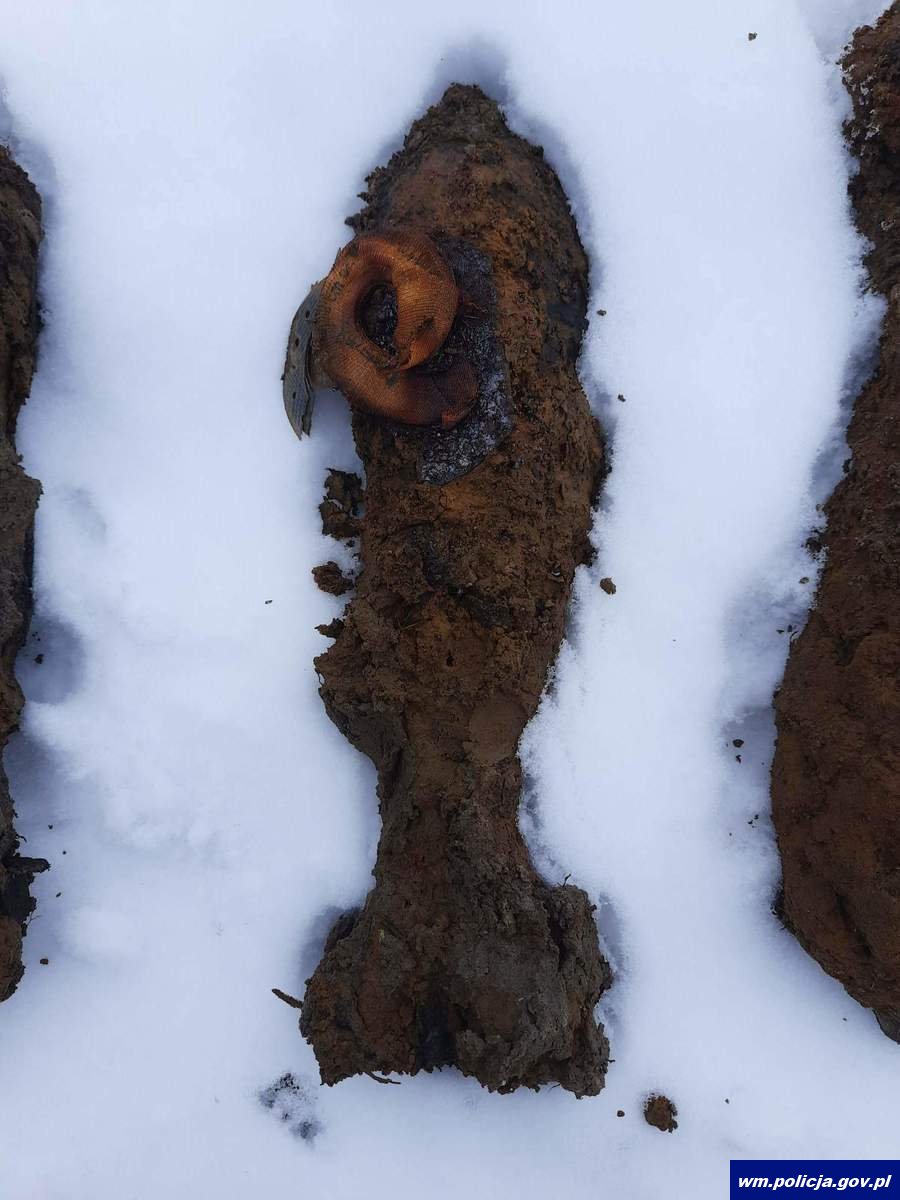 W miniony piątek (27.01.2023r.) oficer dyżurny gołdapskiej komendy został poinformowany o tym, że na terenie Parku Krajobrazowego Puszczy Rominckiej znaleziono kilkanaście niewybuchów. Na miejsce niezwłocznie pojechał policjant przeszkolony w zakresie rozpoznania minersko-pirotechnicznego. Funkcjonariusz ustalił, że operator koparki podczas prac ziemnych wykopał drewnianą skrzynię, z której wypadło kilkanaście pocisków moździerzowych. Policjant potwierdził, że są to granaty moździerzowe z czasów II wojny światowej produkcji niemieckiej. Pomimo upływu lat pociski były w bardzo dobrym stanie, na niektórych widoczne były czytelne napisy. Mundurowy o znalezisku poinformował patrol saperski z Jednostki Wojskowej w Giżycku. Niewybuchy następnego dnia zostały zabrane i przewiezione na poligon. Przez całą dobę miejsce znalezienia niewybuchów zabezpieczali gołdapscy policjanci. Funkcjonariusze dbali o to, aby żadna z postronnych osób nie miała dostępu do niebezpiecznego znaleziska. Podczas działań saperów nie była konieczna ewakuacja.