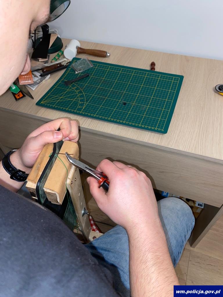 Praca z wyrobem skórzanym wymaga precyzji, cierpliwości, wewnętrznego spokoju i opanowania. To cechy, które kaletnictwo łączą również z innym zajęciem, czyli służbą policjanta. Wie o tym doskonale jeden z policjantów Komendy Powiatowej Policji w Olecku st. sierż. Dawid Jackiewicz. Funkcjonariusz ma 25 lat, a od 5 służy w Policji w ogniwie patrolowo – interwencyjnym oleckiej komendy. Swoje cechy osobowe wykorzystuję w służbie, ale także przy swoim hobby, któremu poświęca czas wolny – czyli kaletnictwie. Jak sam mówi, pozwala mu to na „odreagowanie stresu związanego z codzienną służbą, która bywa trudna i wymagająca”.