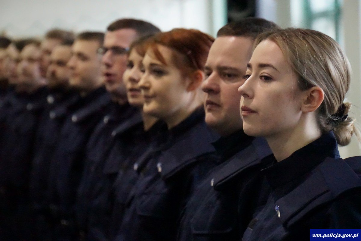 W piątek (03.03.2023) w uroczystej atmosferze, przed swoimi bliskimi i nowymi przełożonymi 34 osoby (6 kobiet i 28 mężczyzn) wypowiedziały słowa policyjnej przysięgi.