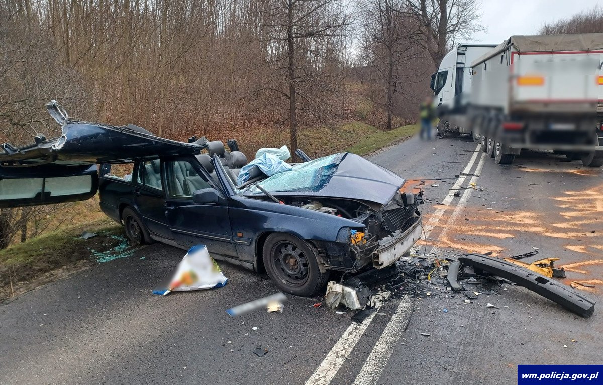 W poniedziałek (27.03.2023 r.) oficer dyżurny Komendy Miejskiej Policji w Olsztynie otrzymał informacje o zdarzeniu drogowym na ul. Bałtyckiej w Olsztynie. Ze wstępnych ustaleń policjantów, którzy pracowali na miejscu wynika, że 58-letni kierujący osobowym volvo z nieznanych przyczyn zjechał na przeciwległy pas ruchu i zderzył się z jadącym z naprzeciwka pojazdem ciężarowym iveco, za którego kierownicą siedział 59-latek. W wyniku zdarzenia kierujący osobowym volvo trafił do szpitala. Badanie policyjnym alkomatem wykazało, że uczestnicy zdarzenia byli trzeźwi. Ruch w tym miejscu w obu kierunkach był zablokowany, zorganizowano objazdy przez Łupstych. Kierującemu volvo zatrzymano prawo jazdy. Wkrótce za spowodowanie zdarzenia drogowego prawdopodobnie będzie tłumaczył się przed sądem.