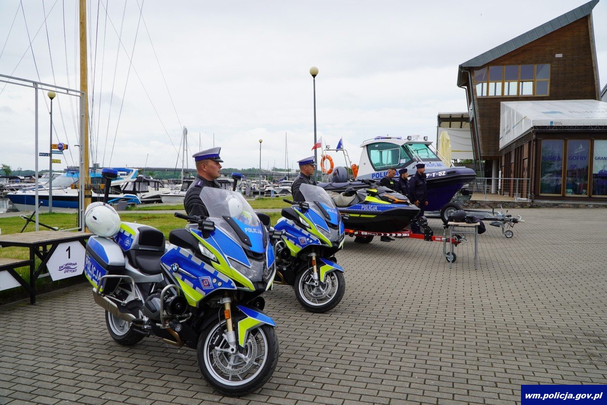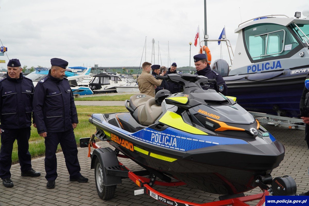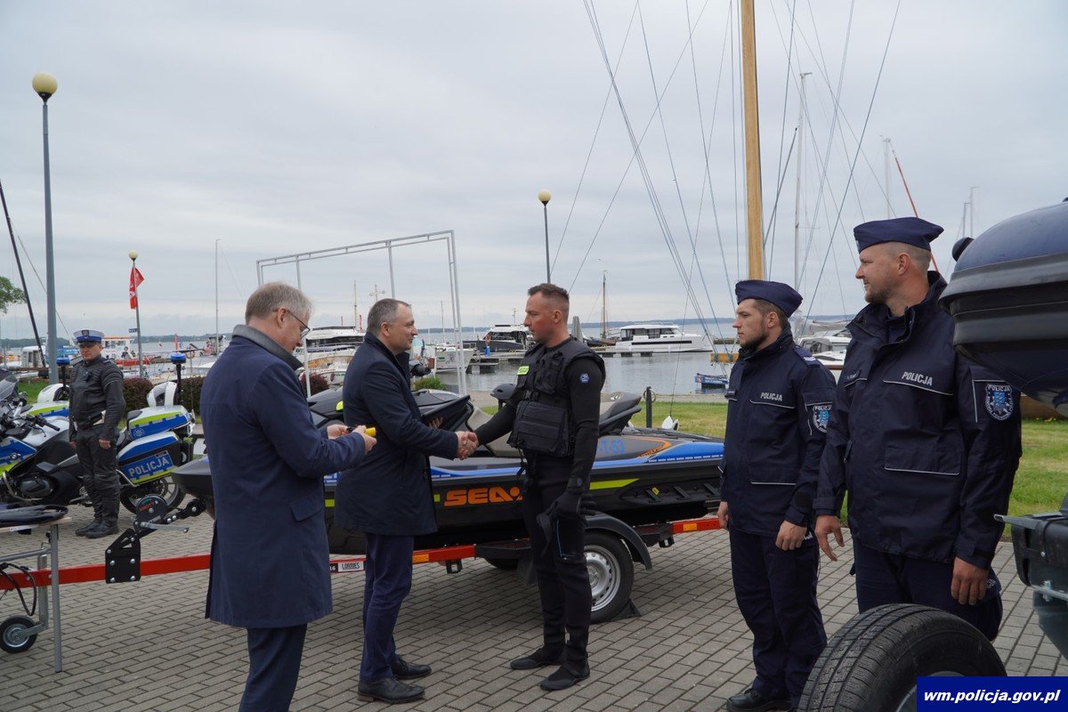 Skuter wodny Sea-Doo o mocy 170 KM, łódź RIP Sportis wartości 380 tys. zł oraz dwa motocykle BMW trafiły do giżyckich policjantów. Uroczyste przekazanie nowego sprzętu odbyło się na placu w porcie Ekomarina w Giżycku. Przekazany skuter jest pierwszym tego typu pojazdem, który trafił do policjantów z Warmii i Mazur.