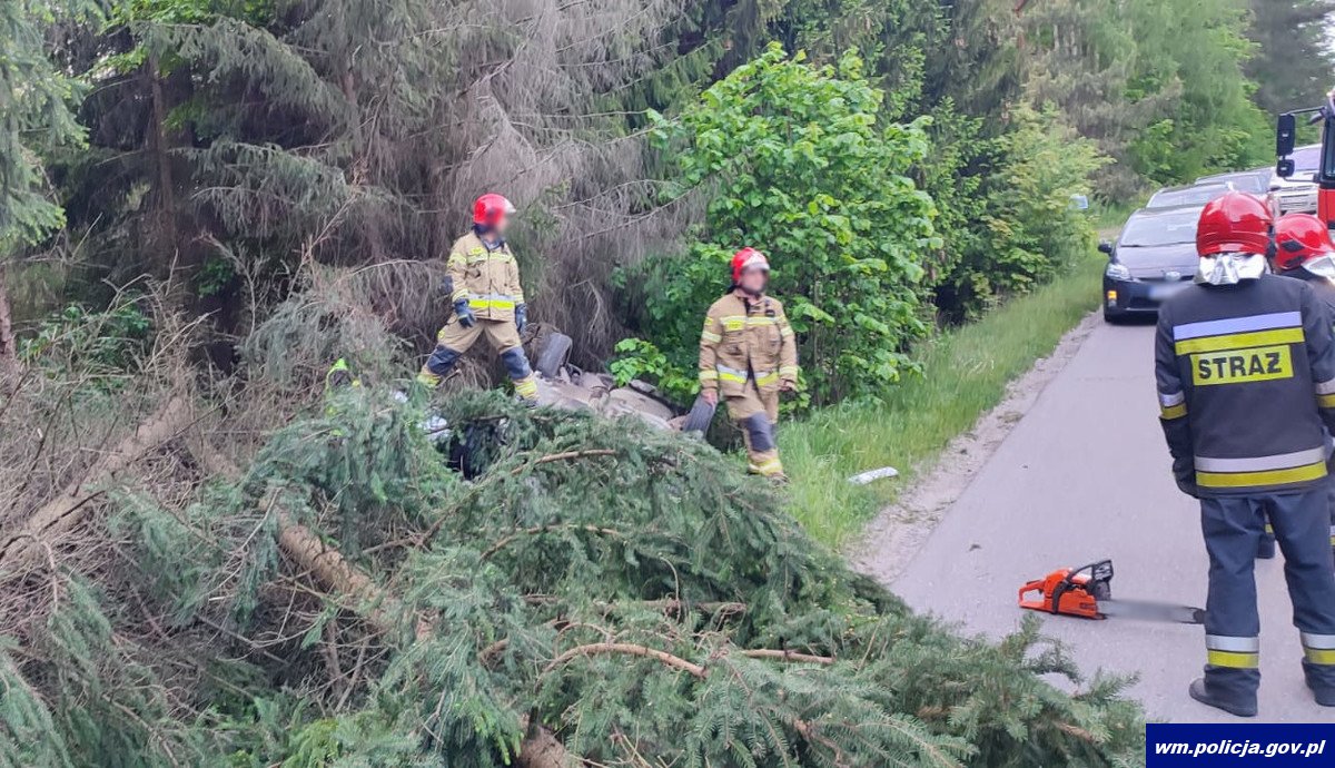 W sobotę (20.05.2023 r.) wieczorem oficer dyżurny KMP w Olsztynie otrzymał zgłoszenie, z którego wynikało, że na al. Wojska Polskiego może poruszać się nietrzeźwy kierujący. Natychmiast na miejsce został wysłany policyjny patrol, który zauważył wskazanego citroena. Funkcjonariusze postanowili go zatrzymać do kontroli drogowej. Mężczyzna siedzący za kierownicą auta początkową zwolnił, a po chwili nagle odjechał, nie reagując na sygnały dźwiękowe i świetlne wzywające go do zatrzymania się, wręcz przeciwnie – przyśpieszył. Mężczyzna kontynuował swoją ucieczkę. Na trasie Wadąg-Słupy kierujący citroenem na łuku drogi stracił panowanie nad pojazdem, zjechał na pobocze, gdzie uderzył w drzewo. Ostatecznie doszło do dachowania auta. Na szczęście nikomu nic poważnego się nie stało. Jak się okazało za kierownicą pojazdu siedział 33-letni mężczyzna, który miał powody, aby uniknąć kontroli drogowej – badanie policyjnym alkomatem wykazało ponad 2 promile alkoholu w jego organizmie. Ponadto po sprawdzeniu w systemach informatycznych wyszło na jaw, że 33-latek wsiadł za kierownicę auta, mimo cofniętych uprawnień.