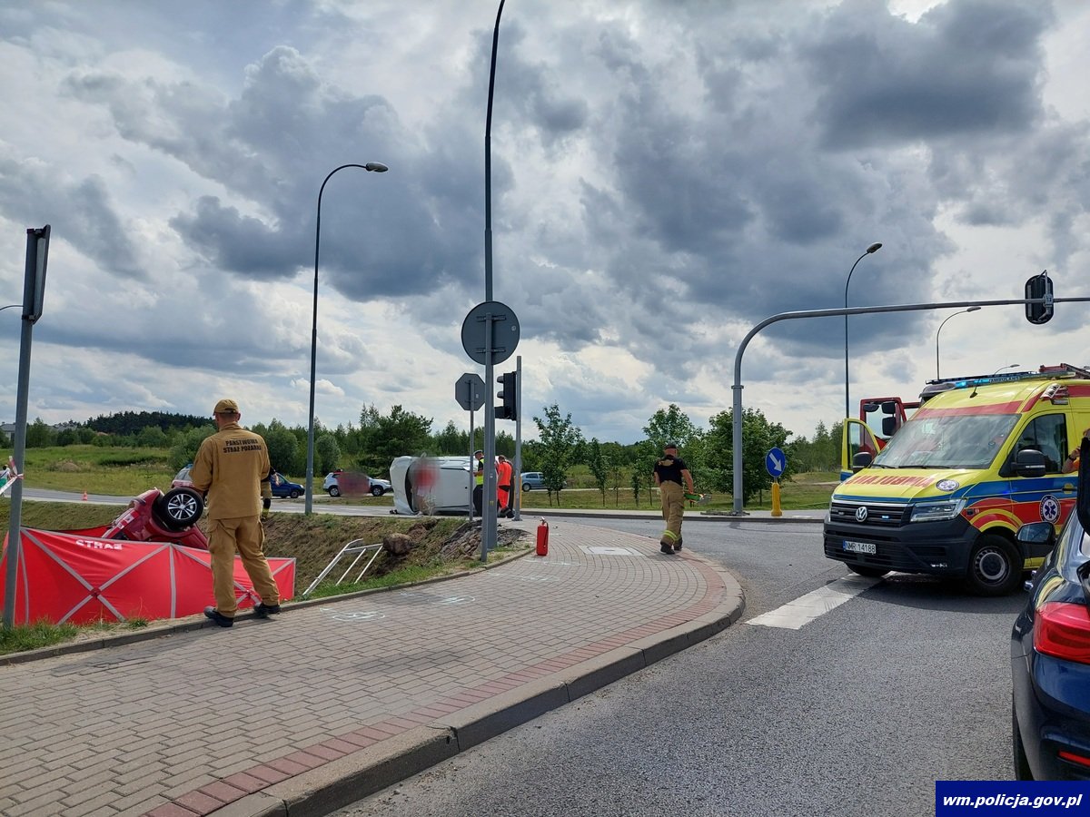 W czwartek (13.07.2023 r.) po godz. 13:00 oficer dyżurny Komendy Powiatowej Policji w Mrągowie został powiadomiony o groźnie wyglądającym zdarzeniu drogowym na obwodnicy Mrągowa. Ze wstępnych ustaleń policjantów pracujących na miejscu zdarzenia wynika, że kierujący pojazdem fiat mieszkaniec Mrągowa, nie ustąpił pierwszeństwa przejazdu kierowcy nissana. Kierujący fiatem najechał na chodnik, a następnie do przydrożnego rowu, gdzie dachował. Niestety, pomimo przeprowadzanej reanimacji nie udało się uratować życia 74-letniej pasażerki, która podróżowała fiatem. 80-letni kierowca fiata został niezwłocznie przewieziony do szpitala. Do placówki medycznej trafili również 66-letni mieszkaniec Kętrzyna kierujący nissanem oraz 65-letnia pasażerka.