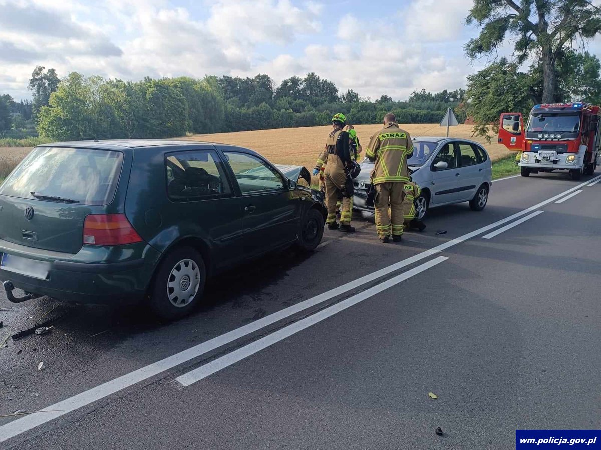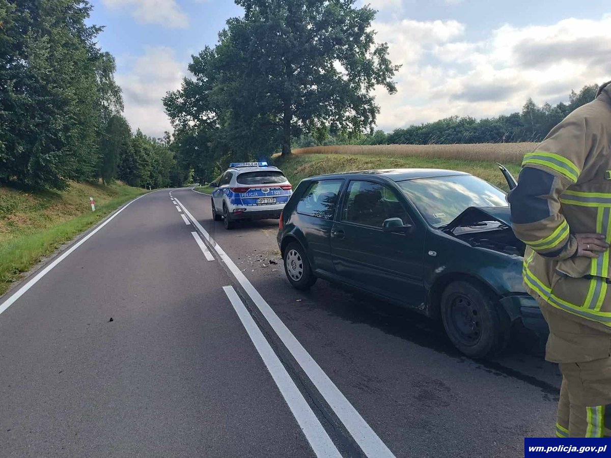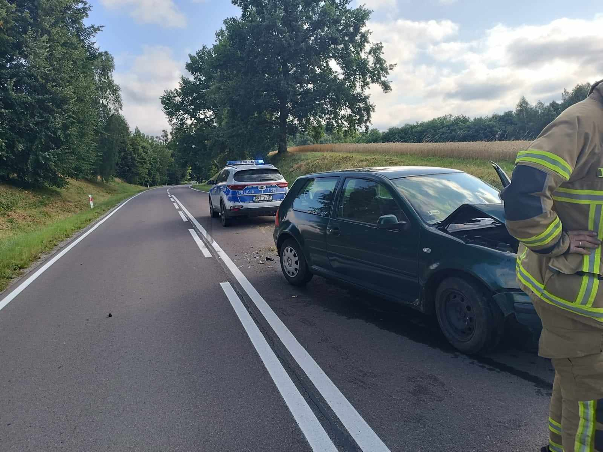 Pierwszy z kierujących we wtorek (25.07.2023 r.) kilka minut po godzinie 7:00 spowodował kolizję drogową. Jak ustalili funkcjonariusze 19-latek kierując vw nie dostosował prędkości do warunków ruchu po czym zjechał na przeciwny pas drogi i doprowadził do czołowego zderzenia z kierującym renaultem. Na szczęście nikomu nic poważnego się nie stało a 19-latek za spowodowanie zagrożenia w ruchu drogowym został ukarany mandatem i jego konto powiększyło się o 10 pkt. karnych.