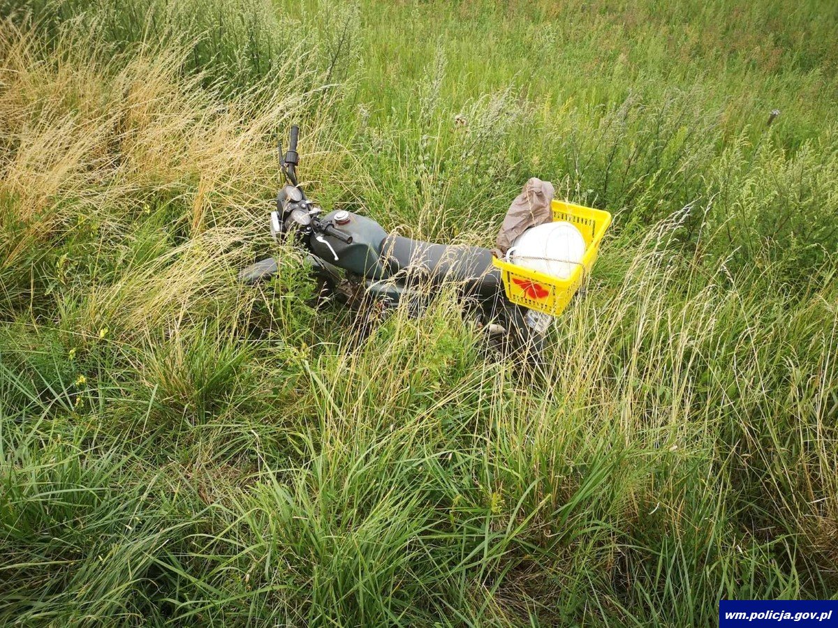 Przed godzina 15:00 policjanci podczas patrolu gminy Kisielice zauważyli kierującego motocyklem, który na widok radiowozu zjechał do rowu i próbował w wysokiej trawie schować pojazd. W trakcie czynność okazało się co było przyczyną takiego zachowania 26-latka. Sprawdzenie w systemach policyjnych wskazało, że mężczyzna ma aktywny zakaz kierowania wszelkimi pojazdami mechanicznymi. Natomiast motocykl nie ma aktualnych badań technicznych i obowiązkowego ubezpieczenie OC. Dodatkowo mieszkaniec gminy Kisielice kierował nim nie mając założonego obowiązkowego kasku ochronnego.