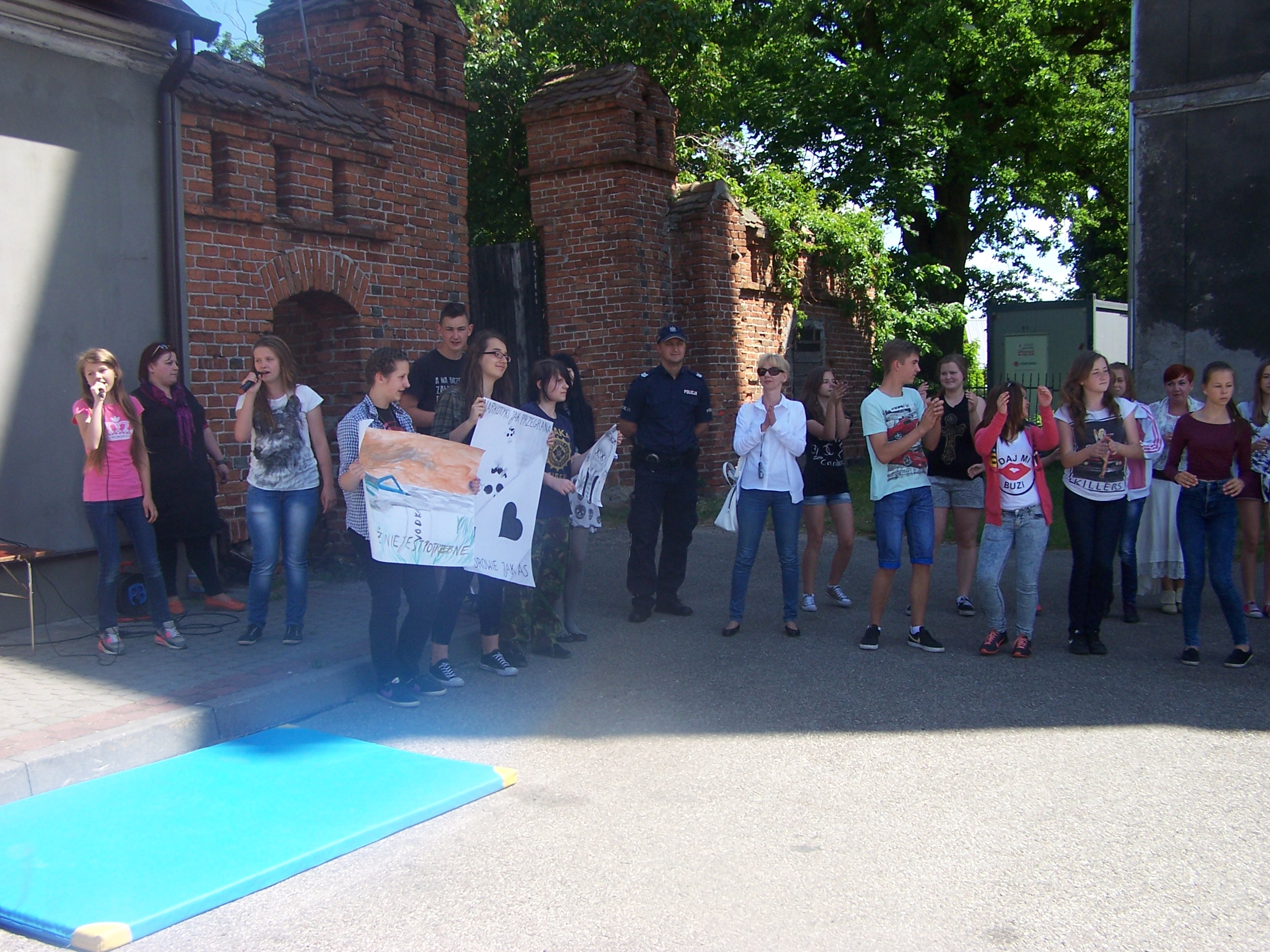 W centrum Wielbarka gimnazjaliści zorganizowali happening „My nie ćpamy my śpiewamy. Wszystkich chętnych zapraszamy”, którzy w ten sposób manifestowali swoje nastawienie do środków odurzających. Młodzież w działaniach wspierała Pani Ilona Górska pedagog szkolna, Pani Nina Musiał psycholog szkolna, Pani Anna Kanak z sanepidu oraz sierż. sztab. Ewa Szczepanek i sierż. sztab. Paweł Radziński. Wszyscy razem przeszli ulicami swojego miasta trzymając transparent z hasłem „My nie ćpamy my śpiewamy. Wszystkich chętnych zapraszamy” zachęcając do wspólnego happeningu. Nastolatkowie śpiewem, tańcem, muzyką i innymi artystycznymi akcentami wyrazili niechęć do narkotyków, dopalaczy, alkoholu i papierosów. W ten sposób uczniowie głośno wykrzyczeli, że mówią NIE tym używkom oraz wybierają życie bez nałogu oraz wspomagaczy.