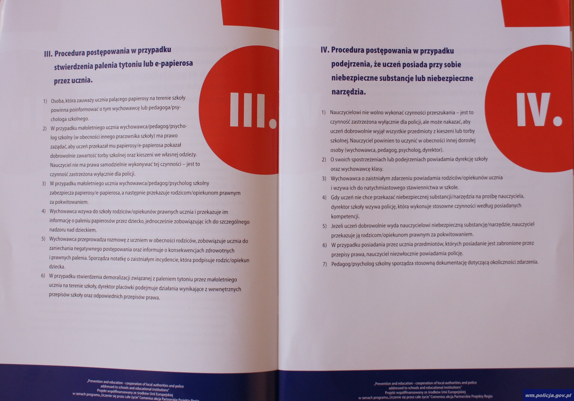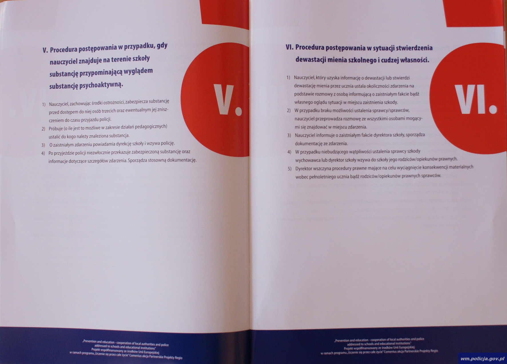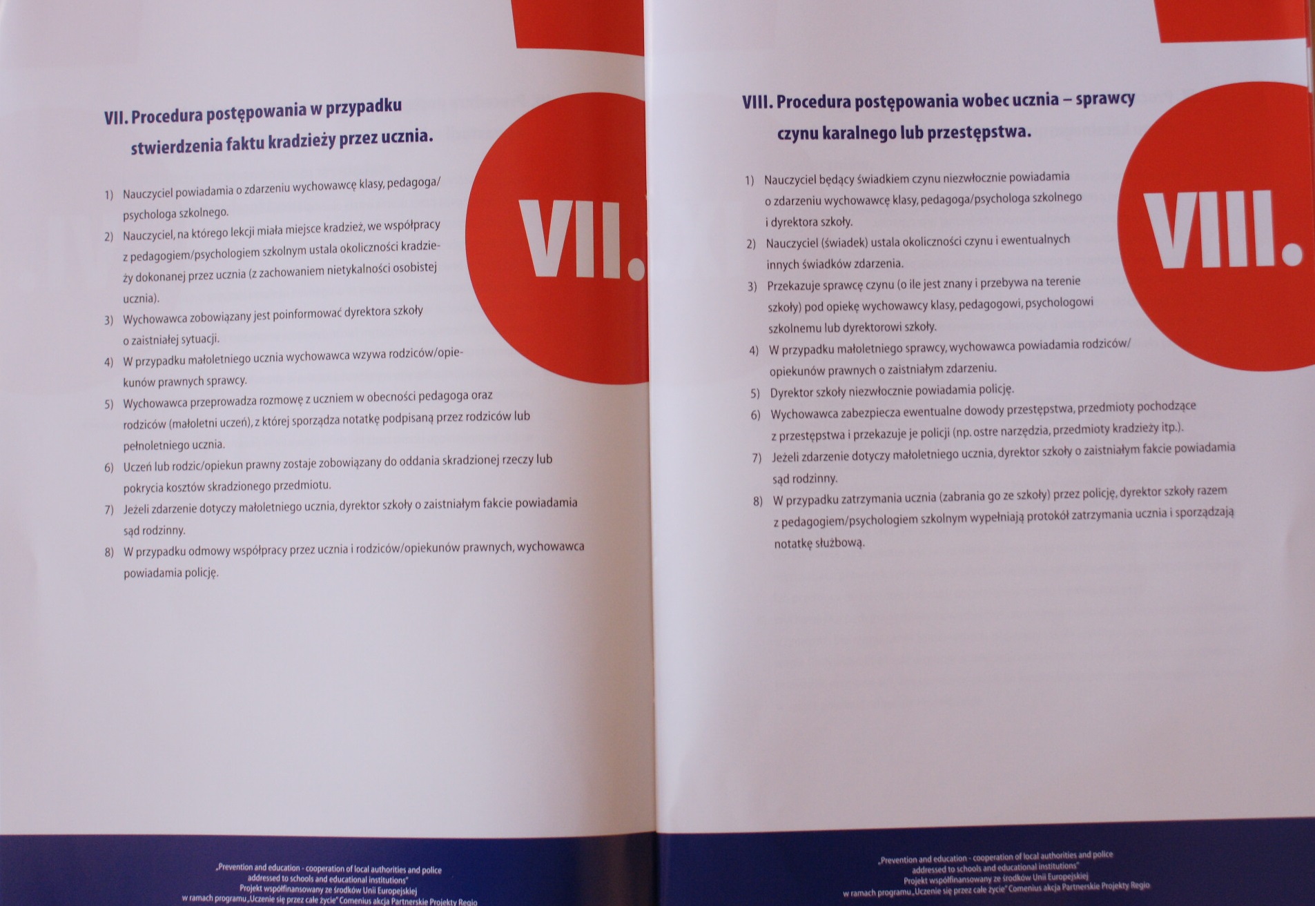 „Szkolne procedury postępowania nauczycieli i metody współpracy szkoły z Policją…” to tytuł 40 stron opracowania. Powstało ono przy współpracy: elbląskiej Policji, Urzędu Miejskiego, Gimnazjum nr 6 w Elblągu oraz Zespołu Szkół Ekonomicznych i Ogólnokształcących w Elblągu. Projekt współfinansowany jest ze środków Unii Europejskiej w ramach programu „Uczenie się przez całe życie”.