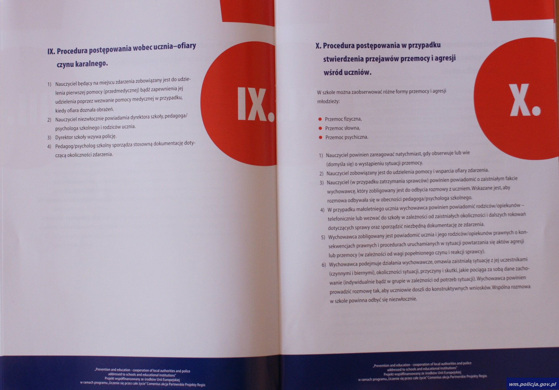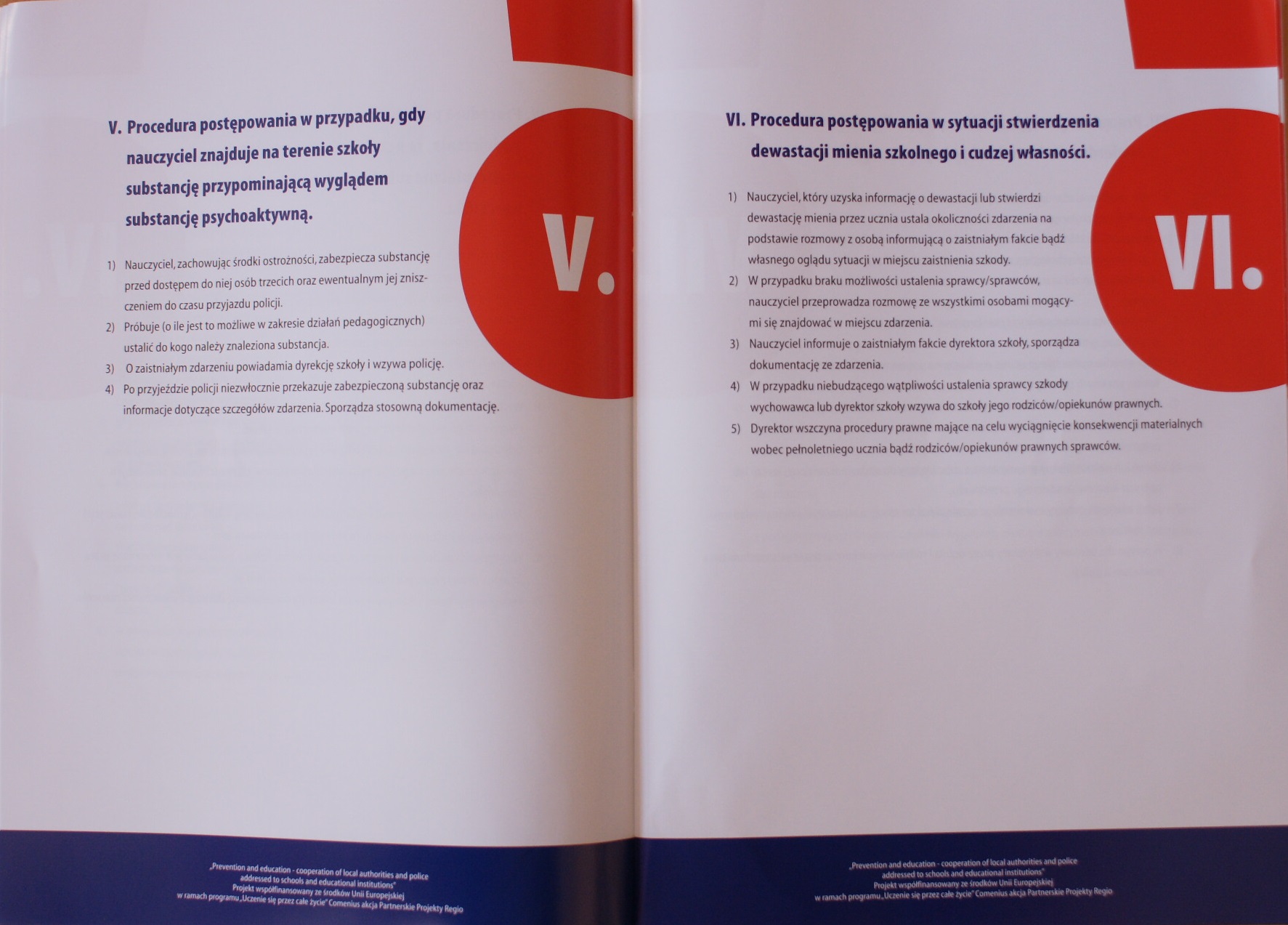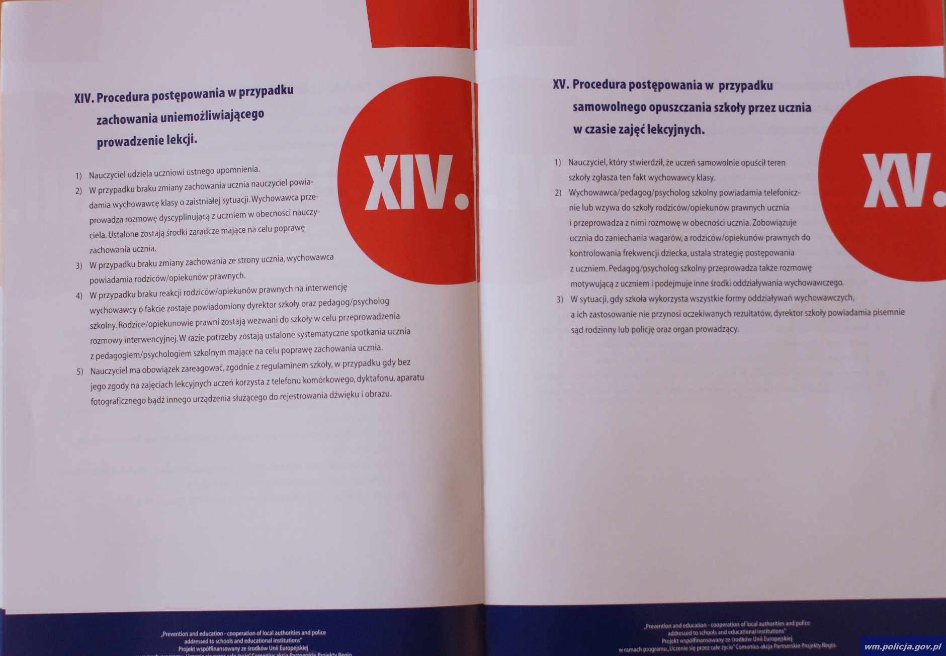 „Szkolne procedury postępowania nauczycieli i metody współpracy szkoły z Policją…” to tytuł 40 stron opracowania. Powstało ono przy współpracy: elbląskiej Policji, Urzędu Miejskiego, Gimnazjum nr 6 w Elblągu oraz Zespołu Szkół Ekonomicznych i Ogólnokształcących w Elblągu. Projekt współfinansowany jest ze środków Unii Europejskiej w ramach programu „Uczenie się przez całe życie”.