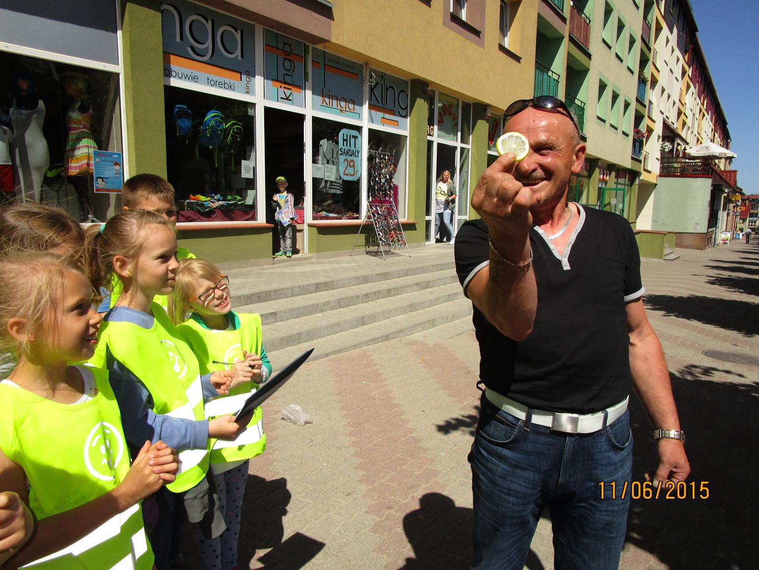 Policjanci wspólnie z dziećmi przeprowadzili akcję "ŻÓŁTA CYTRYNA O BEZPIECZEŃSTWIE PRZYPOMINA". W trakcie akcji najmłodsi rozdawali wzorowym przechodniom odblaski, natomiast sprawcy wykroczeń karani byli cytrynką i pouczeniem.