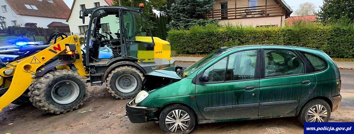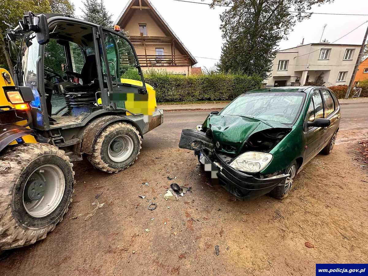 W piątek (27.10.2023) około godz. 8:00 oficer dyżurny kętrzyńskich policjantów otrzymał zgłoszenie o zdarzeniu drogowym do którego doszło na ul. Jagiełły w Kętrzynie. Z przekazanych informacji wynikało, że zderzyło się auto osobowe z koparko-ładowarką i jedna osoba jest poszkodowana. We wskazane miejsce natychmiast zostały wysłane służby ratunkowe. Będący na miejscu policjanci ustalili, że 42-letni kierujący koparko-ładowarką wykonując manewr skrętu w lewo nie upewnił się, że jest już wyprzedzany przez samochód osobowy marki Renault w wyniku czego doszło do zderzenia pojazdów. Kierujący samochodem osobowym 47-latek z obrażeniami głowy oraz ciała został przewieziony do szpitala. Obaj kierujący byli trzeźwi.