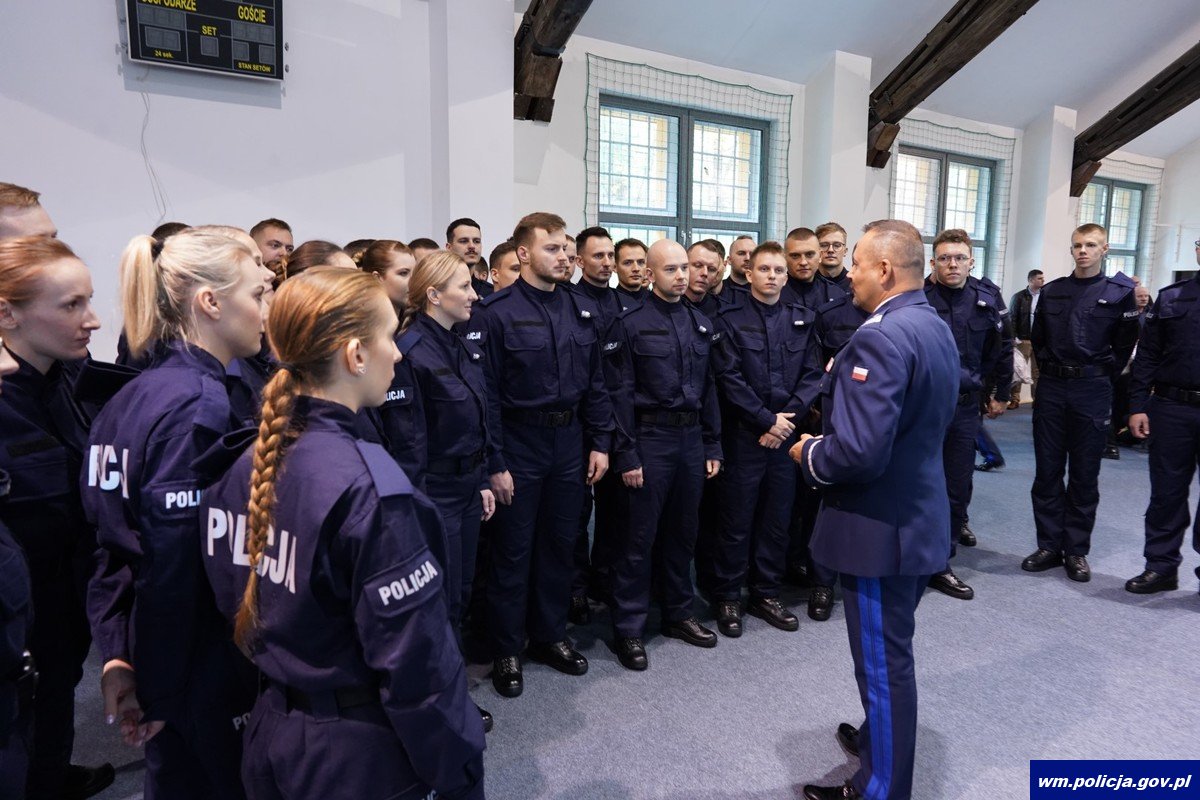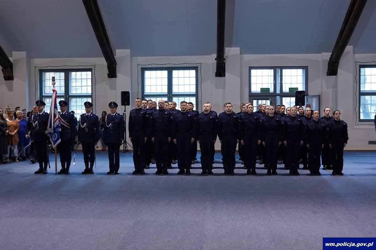 To jeden z najważniejszych dni w policyjnej karierze. Początek drogi, która kształtuje charakter, pozwala zdobyć nowe umiejętności, daje satysfakcję z realizacji zadań i niesienia pomocy innym. Aktualnie na Warmii i Mazurach służbę pełni około 3500 policjantów. Swoje zadania realizują w 19 powiatach, w komendzie wojewódzkiej, komendach miejskich, komendach powiatowych, komisariatach i posterunkach. Ich grono zasiliła grupa nowo przyjętych funkcjonariuszy: 10 policjantek i 28 policjantów. W poniedziałek (06.11.2023) w obecności swoich bliskich i nowych przełożonych uroczyście ślubowali „służyć wiernie Narodowi”. Słowa roty ślubowania powtórzyli za swoim nowym szefem, czyli nadinsp. Tomaszem Klimkiem Komendantem Wojewódzkim Policji w Olsztynie.