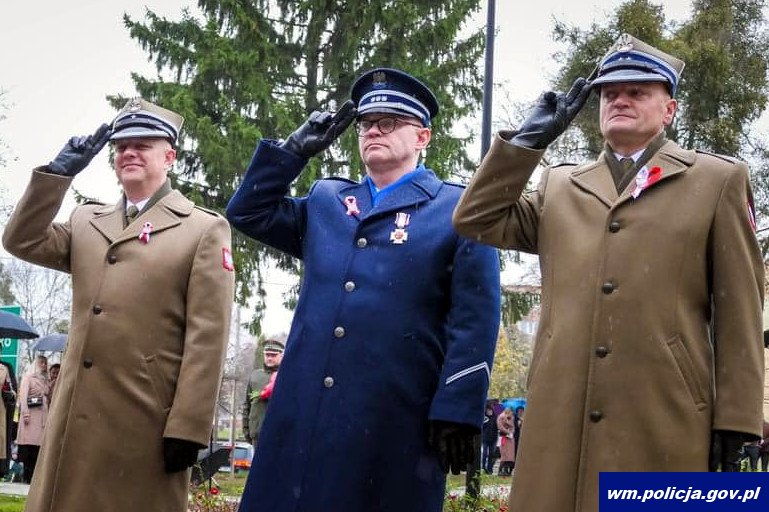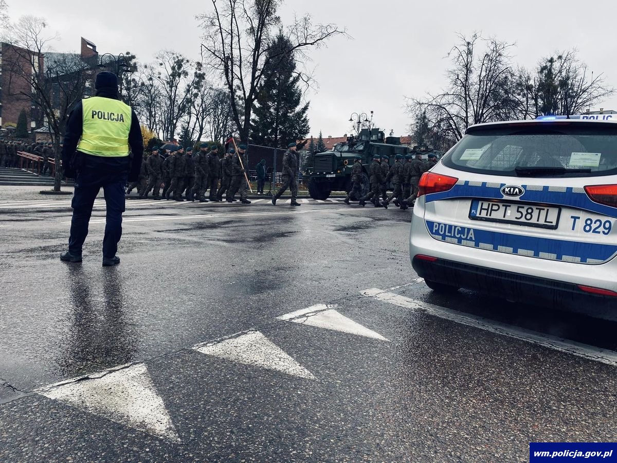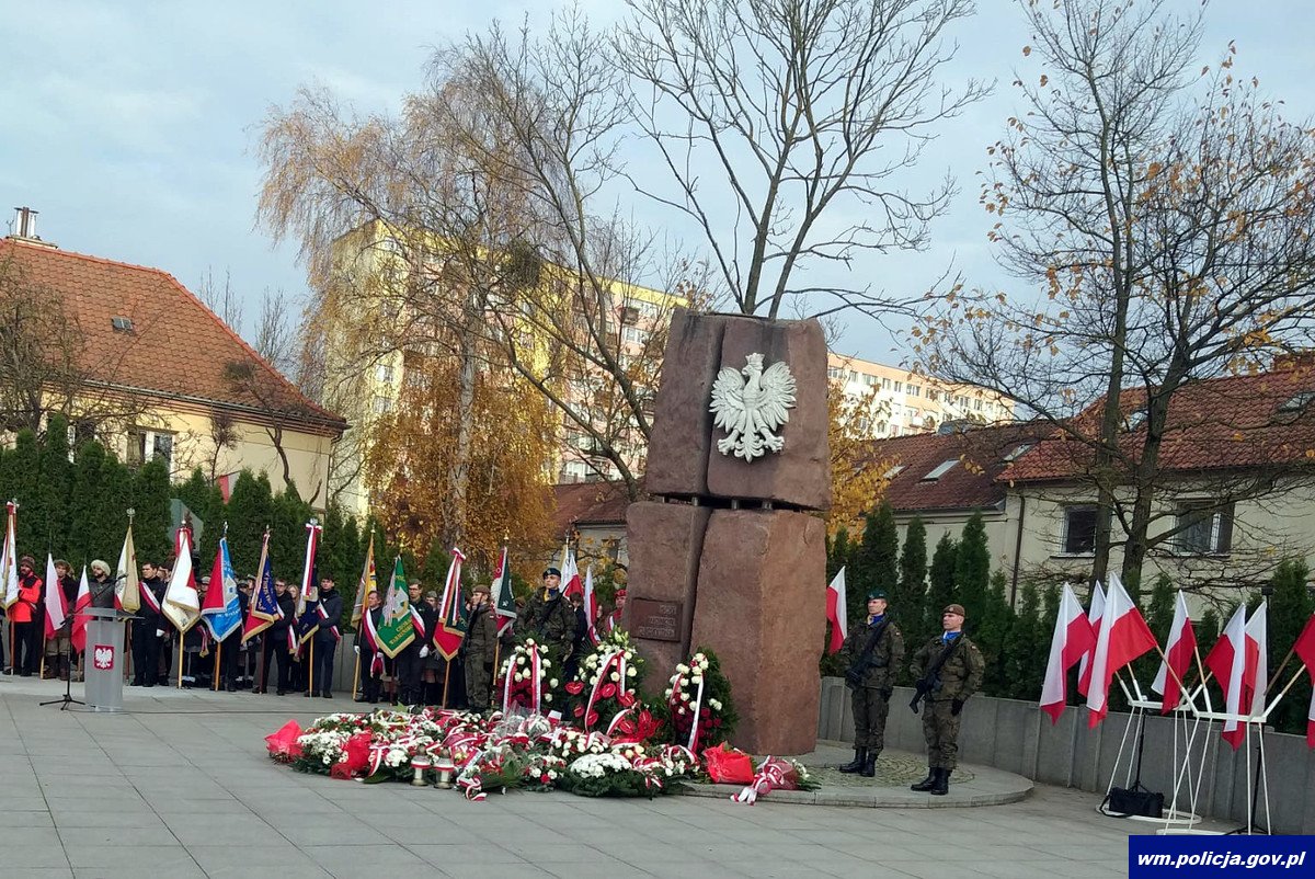 Wojewódzkie Obchody Narodowego Święta Niepodległości rozpoczęły się w sobotę (11.11.2023) od mszy w intencji Ojczyzny w Bazylice Konkatedralnej św. Jakuba w Olsztynie. Kolejnym elementem obchodów był przemarsz na Plac Solidarności, gdzie zgromadzeni mogli wysłuchać okolicznościowych wystąpień, a następnie zobaczyć defiladę kompanii honorowych i pocztów sztandarowych. Pod tablicą pamiątkową marszałka Józefa Piłsudskiego złożone zostały kwiaty. Jak zawsze policjanci z tej okazji spotkali się z mieszkańcami, zaprezentowali swój sprzęt służbowy, rozstawili stoiska, przy których rozmawiali z mieszkańcami. Podobne spotkania odbyły sie w wielu innych miejscach regionu. Ponadto policjanci zadbali o bezpieczny przebieg uroczystości związanych z dniem 11 listopada. Pełnili służbę zarówno na drogach, jak i w miejscach zaplanowanych wydarzeń. Wszystko po to, by nic nie zakłóciło bezpiecznego przebiegu narodowego święta.
