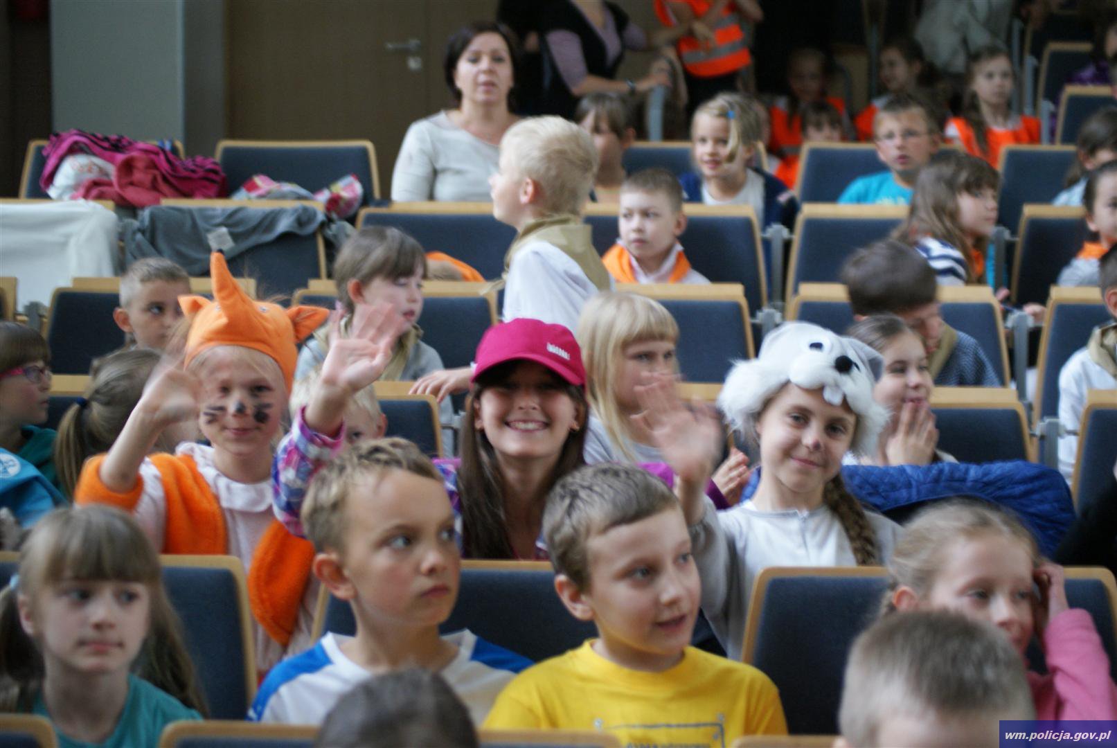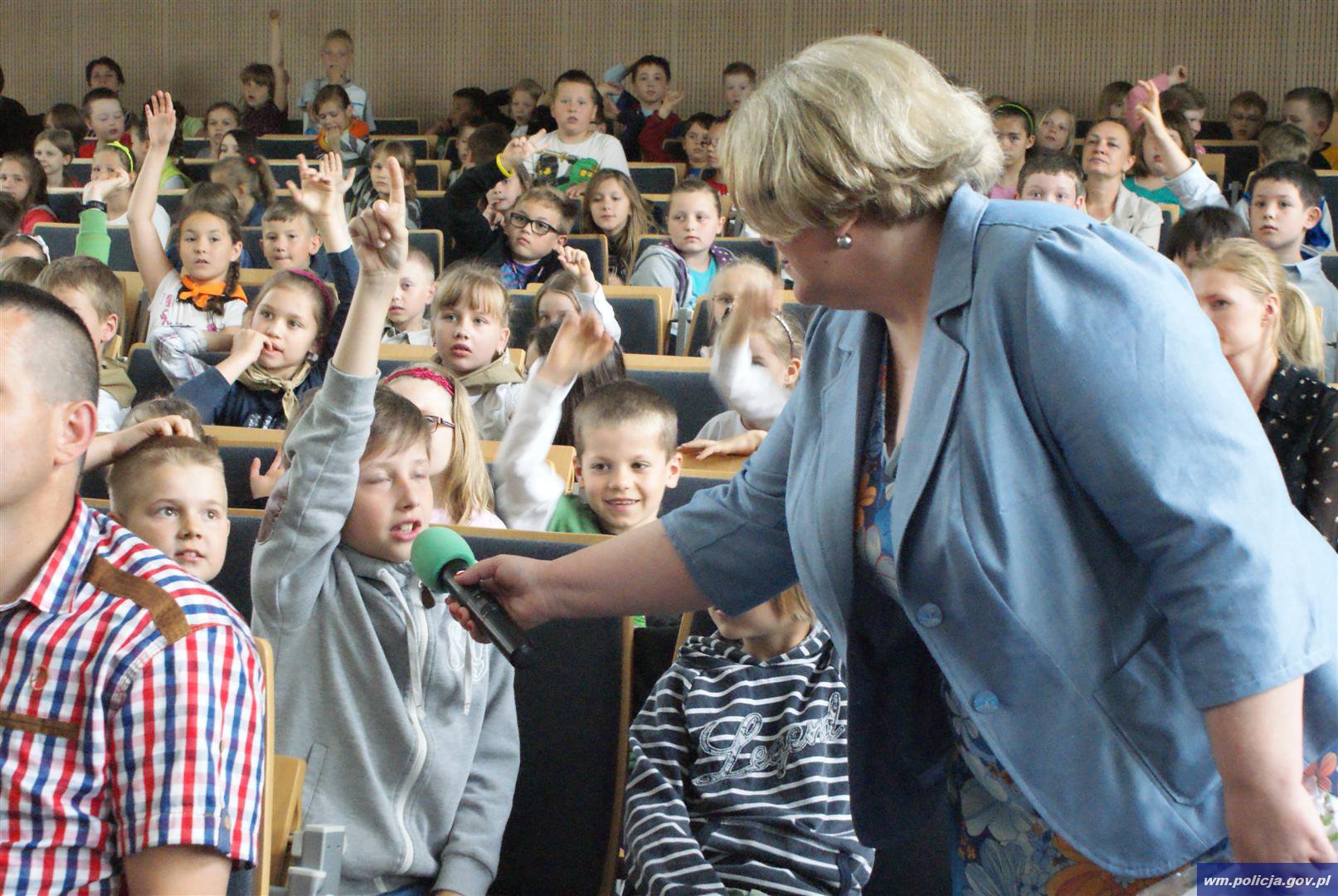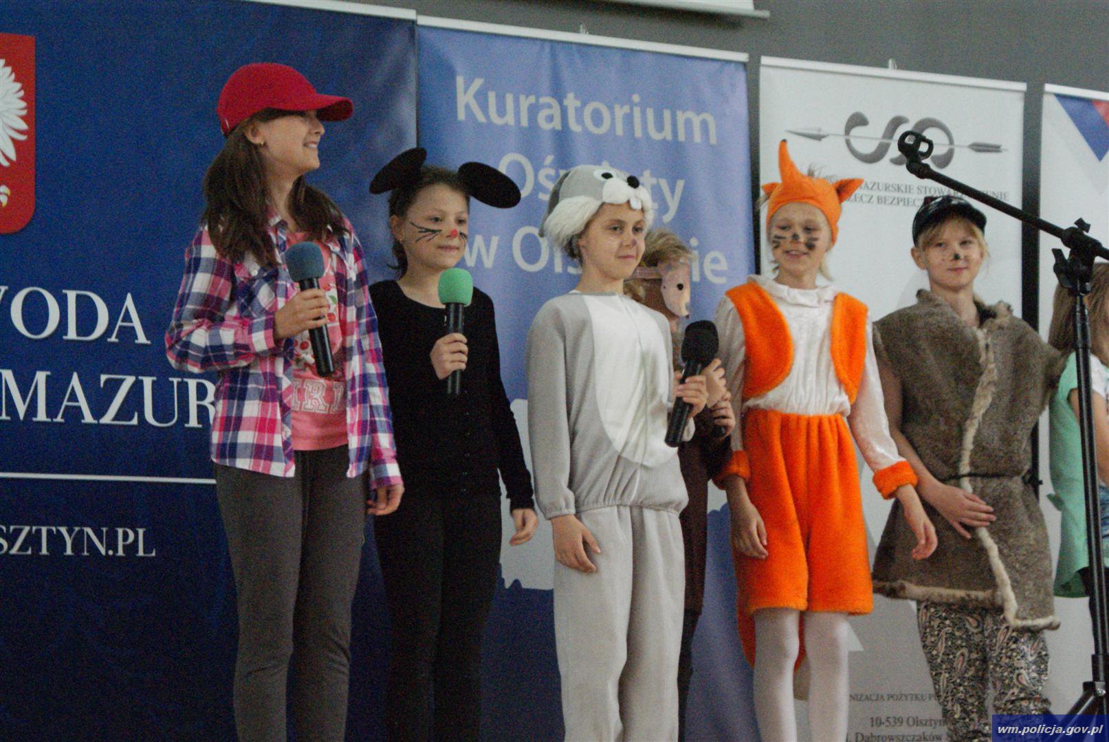 W trakcie uroczystego spotkania dzieci aktywnie brały udział w przygotowanych konkursach i z zainteresowaniem śledziły występy swoich kolegów i koleżanek, którzy na scenie przypominali o zachowywaniu zasad bezpieczeństwa w codziennym życiu.