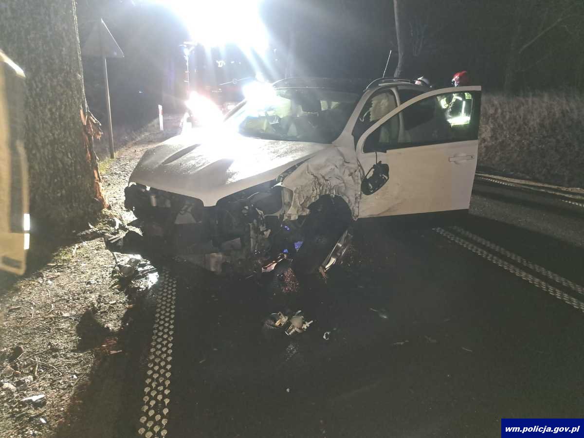 Do groźnie wyglądającego zdarzenia drogowego doszło w świąteczny poniedziałek (25.12.2023r.) kilka minut przed godz. 6:00 na drodze wojewódzkiej nr 650, w Dąbrówce Polskiej. Jak ustalili pracujący na miejscu policjanci, 60-letnia kierująca Nissanem podróżowała w kierunku Węgorzewa, kiedy wprost przed jadący pojazd wbiegło dzikie zwierzę. Kobieta próbując uniknąć zdarzenia, wpadła w poślizg, straciła panowanie nad pojazdem i zjechała na pobocze, a następnie uderzyła w przydrożne drzewo. Kierująca podróżowała sama. Całe szczęście obrażenia okazały się niegroźne, kobieta nie wymagała hospitalizacji.