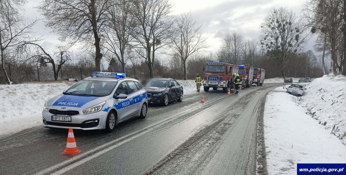 Zaraz po godz. 9:00 oficer dyżurny mrągowskiej Policji został poinformowany o zdarzeniu drogowym do jakiego doszło w miejscowości Kolonia Mikołajki na drodze krajowej nr 16. Policjanci, którzy przybyli na miejsce zastali pojazd marki Skoda w rowie. Okazało się, że 62-letnia kierująca skodą jadąc od strony Mikołajek w kierunku Woźnic na prostym odcinku drogi nie dostosowała prędkości do warunków ruchu, w wyniku czego straciła panowanie nad pojazdem i zjechała na przeciwległy pas ruchu, a następnie do przydrożnego rowu. Kobieta jechała sama i na skutek zdarzenia nie doznała poważnych obrażeń.