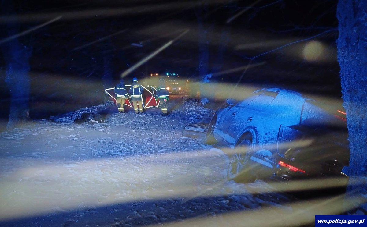 Zgłoszenie wpłynęło do służb we wtorek (02.01.2024 r.) po godzinie 16:40 z drogi Chełchy-Przykopka. Na miejscu na poboczu policjanci zastali rozbity pojazd audi, który uderzył w drzewo. Kierowca nie odniósł obrażeń, był trzeźwy.