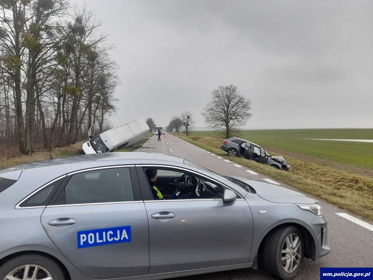 Do zdarzenia doszło w trudnych warunkach atmosferycznych. Mgła znacznie utrudniała widzialność, nawierzchnia była śliska, jednak prawdopodobnie to prędkość niedostosowana do panujących warunków była główną przyczyną tego wypadku drogowego. Kierowca audi był trzeźwy i jechał sam. Kierowca busa również był trzeźwy, jednak przewoził 3 pasażerów. Wszyscy uczestnicy wypadku trafili do szpitali w Kętrzynie i Bartoszycach. Kierowca audi, ma poważne obrażenia, nadal trwa diagnostyka jednego z pasażerów busa, pozostałym mężczyznom nic poważnego się nie stało.