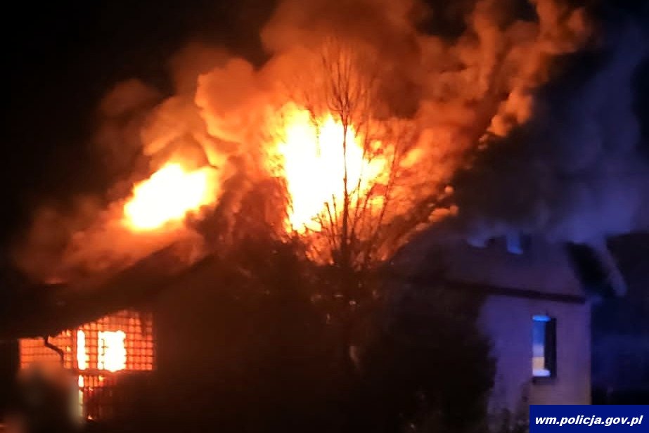 Tak też było w nocy z wtorku na środę (13/14.02.2024 r.) po godz. 1:00, kiedy oficer dyżurny szczycieńskiej jednostki otrzymał zgłoszenie, które wskazywało na poważne zdarzenie. W miejscowości Kowalik w domu jednorodzinnym wybuchł pożar. Na miejsce zostali skierowani policjanci szczycieńskiej patrolówki – st. post. Jakub Chwesiuk i st. post. Kamil Polak. Mundurowi byli na miejscu jeszcze przed przyjazdem strażaków. Na posesji policjanci zastali jedną z mieszkanek domu, która powiedziała im, że w płonącym budynku została jej schorowana mama, która ze względu na rozprzestrzeniający się ogień i zadymienie, nie mogła samodzielnie go opuścić.