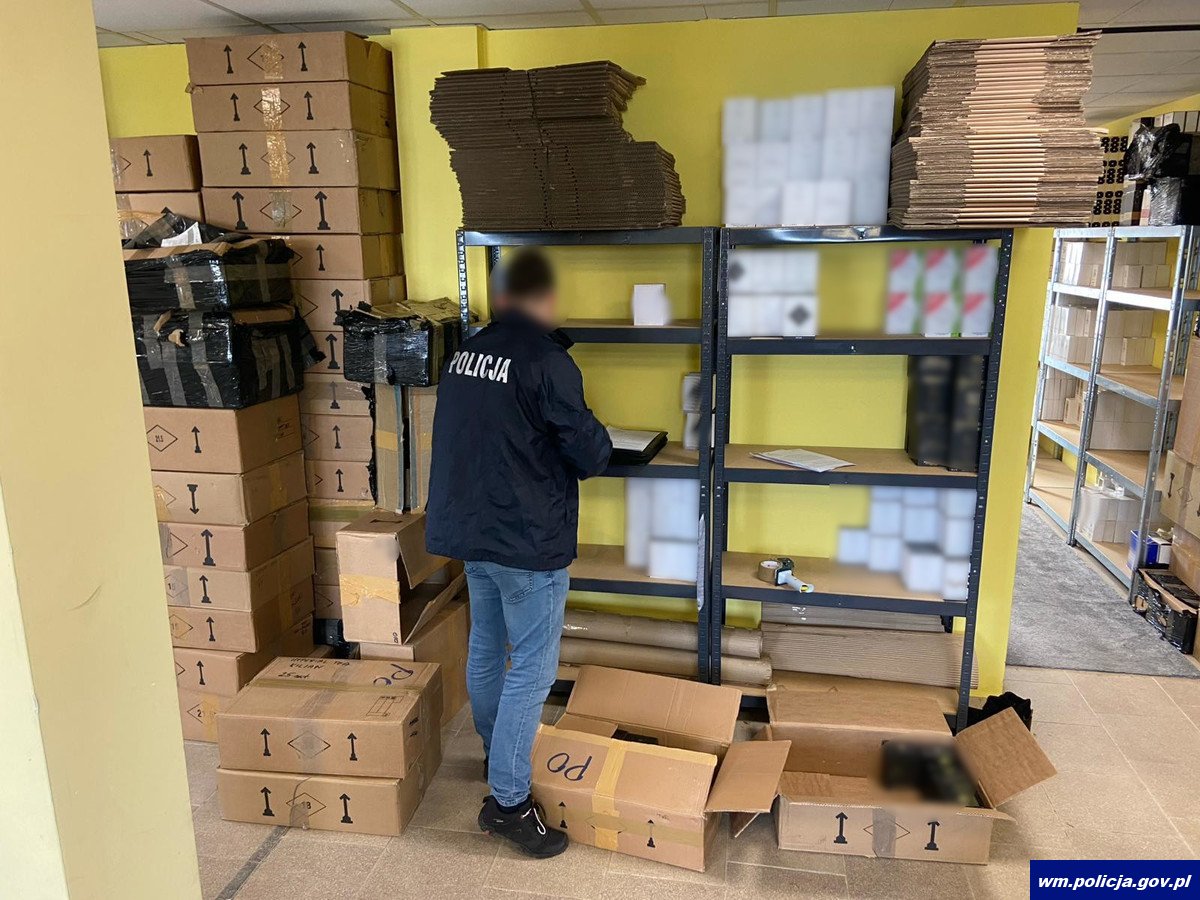 Zebrany przez policjantów materiał dowodowy pozwolił na wydanie przez Prokuraturę Okręgową w Olsztynie, która nadzoruje czynności policjantów, postanowienia o przeszukaniu magazynów i zatrzymaniu podejrzanego mężczyzny. W piątek (01.03.2024 r.) policjanci podjechali pod jeden z magazynów celem potwierdzenia zebranych informacji i realizacji wydanych postanowień. W magazynie mieszczącym się na terenie pow. mikołowskiego zastali kilka osób, w tym mężczyznę będącego w ich zainteresowaniu oraz podrobione perfumy. Zatrzymany 46-latek nie spodziewał się wizyty policjantów. W rozmowie z nimi od razu przyznał, że cały towar znajdujący się w magazynie należy do niego, oraz że są to perfumy z podrobionymi znakami towarowymi. W tym samym czasie funkcjonariusze KWP w Olsztynie rozpoczęli przeszukanie drugiego magazynu, który również należał do mężczyzny, a znajdował się w sąsiednim powiecie.