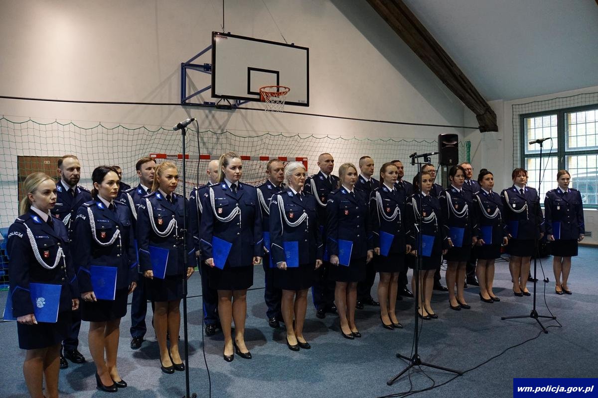 Podczas drugiej części uroczystości, w uroczystej atmosferze, przy obecności swoich bliskich oraz kadry kierowniczej Komendy Wojewódzkiej Policji w Olsztynie, 15 funkcjonariuszy ślubowało „służyć wiernie Narodowi, chronić ustanowiony Konstytucją Rzeczypospolitej Polskiej porządek prawny, strzec bezpieczeństwa Państwa i jego obywateli, nawet z narażeniem życia”.