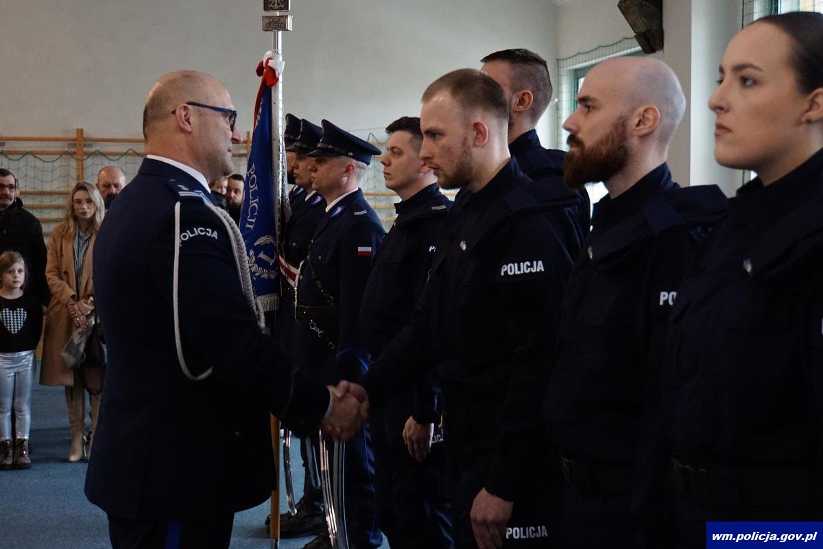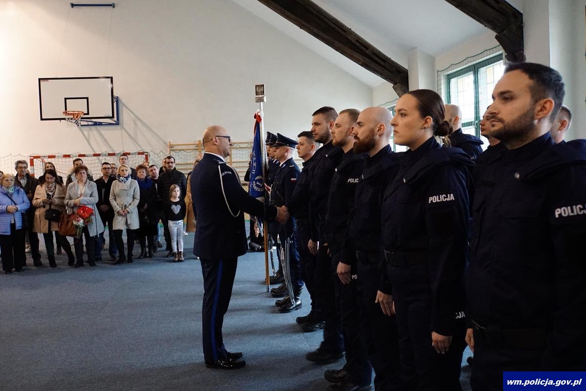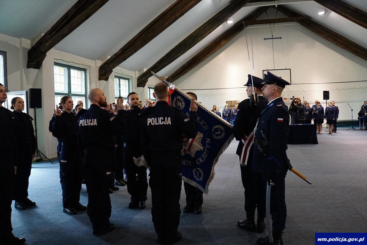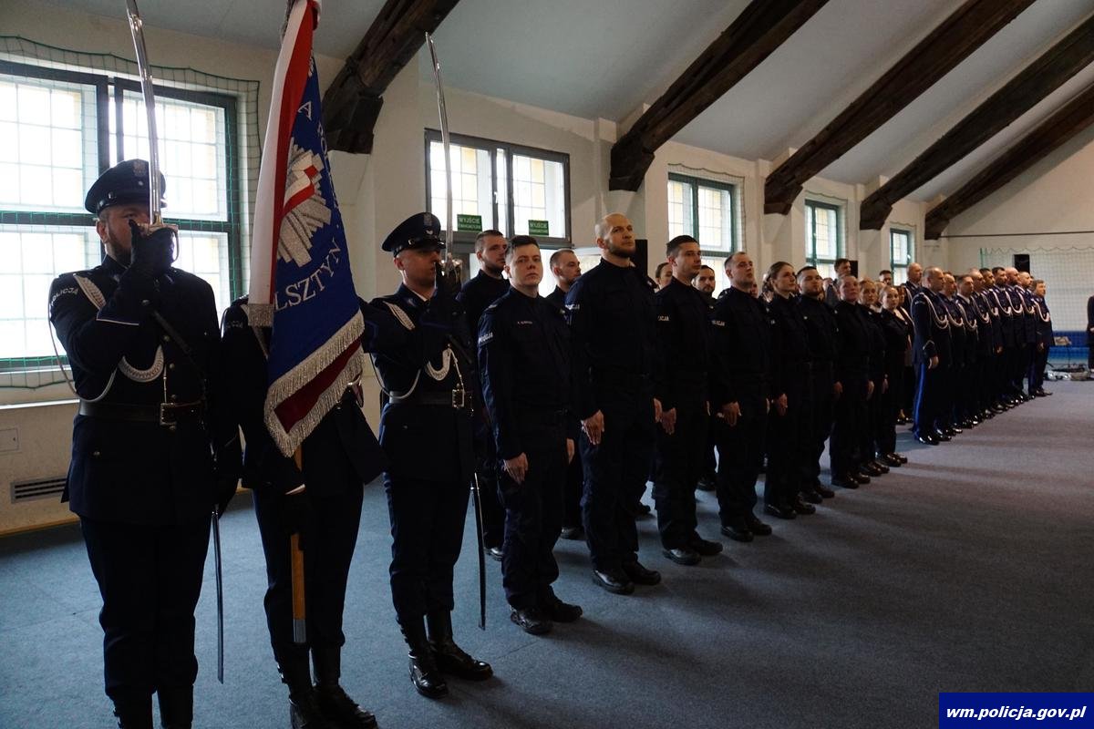 Słowa policyjnej przysięgi policjanci powtórzyli za mł.insp. Pawłem Krauz p.o. Komendant Wojewódzki Policji w Olsztynie, który powitał ich w szeregach Policji, życząc udanego początku służbowej drogi i pomyślnej kariery w policyjnym mundurze. Komendant podkreślił również:
