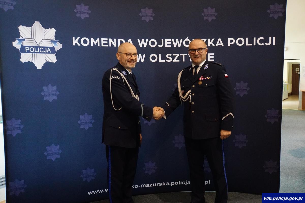 W poniedziałek (11.03.2024 r.) w sali Oddziału Prewencji Policji w Olsztynie miała miejsce uroczystość o podwójnym charakterze. Jej pierwsza część dotyczyła uroczystego wprowadzenia nowego Zastępcy Komendanta Wojewódzkiego Policji w Olsztynie nadzorującego pion logistyczny. Decyzją insp. Marka Boronia p.o. Komendant Główny Policji, został nim insp. Jarosław Brzozowski dotychczas związany z Komendą Powiatową Policji w Płońsku. Swojego nowego zastępcę przywitał mł. insp. Paweł Krauz p.o. Komendant Wojewódzki Policji w Olsztynie. Jak powiedział: