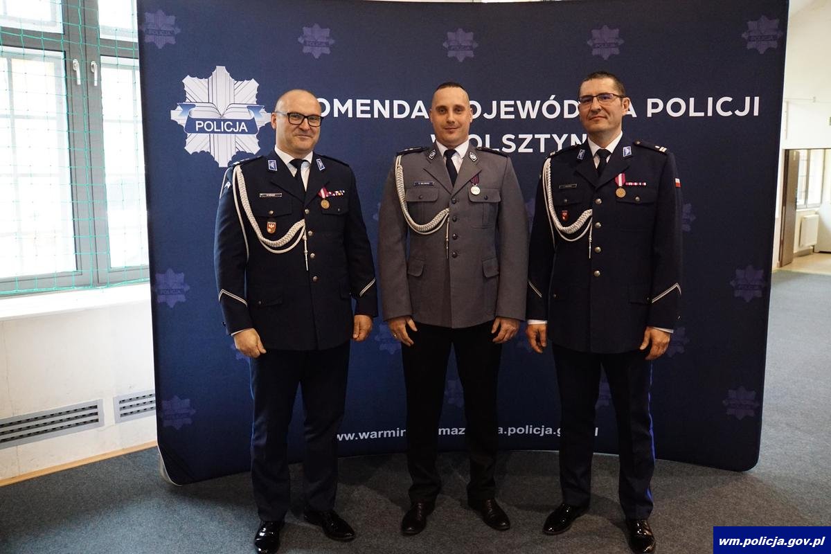 W trakcie uroczystości jako wzór do naśladowania młodszym kolegom został przedstawiony asp. Krzysztof Milewski z Komendy Powiatowej Policji w Braniewie. W lipcu 2023 r. wraz ze st. post. Aleksandra Miernicka roku w powiecie braniewskim podczas służby zauważył mężczyznę, który wpadł do rzeki Pasłęka i zaczął się topić. Wtedy to mł.asp. Krzysztof Milewski nie zawahał się ani chwili i narażając swoje zdrowie i życie, wskoczył do wody w pełnym umundurowaniu, przekazując tylko broń służbową swojej koleżance. Dotarł do topiącego się mężczyzny, chwycił go i razem z nim skierował się do brzegu. Przy pomocy koleżanki z patrolu wyciągnęli mężczyznę na brzeg rzeki, czym zapobiegli jego utonięciu. Na szczęście nic mu się nie stało i nie potrzebował pomocy medycznej.