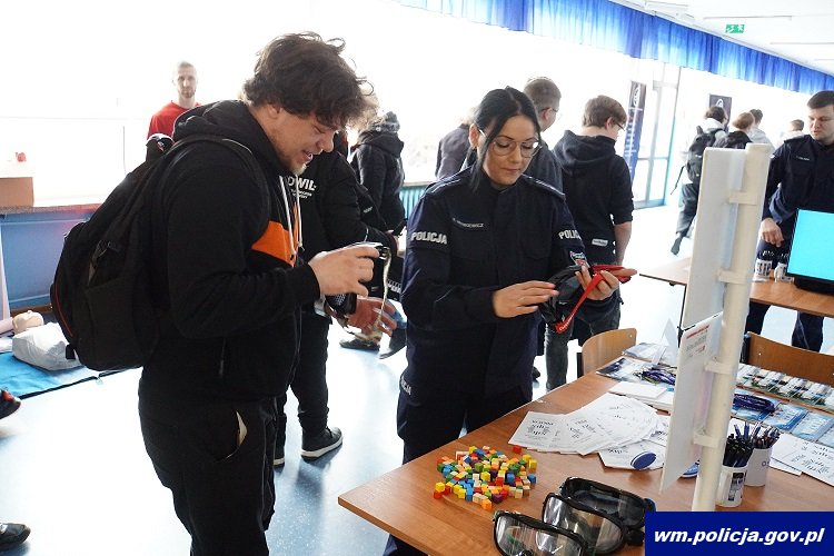 Na zaproszenie Zespołu Szkół Elektronicznych i Telekomunikacyjnych w Olsztynie, policjanci z Komendy Wojewódzkiej Policji w Olsztynie i Oddziału Prewencji Policji w Olsztynie spotkali się z uczniami, promując zawód policjanta. Każdy chętny mógł zapoznać się z wyposażeniem używanym w codziennej służbie, przypomnieć sobie zasady bezpieczeństwa w ruchu drogowym oraz udzielania pierwszej pomocy.
