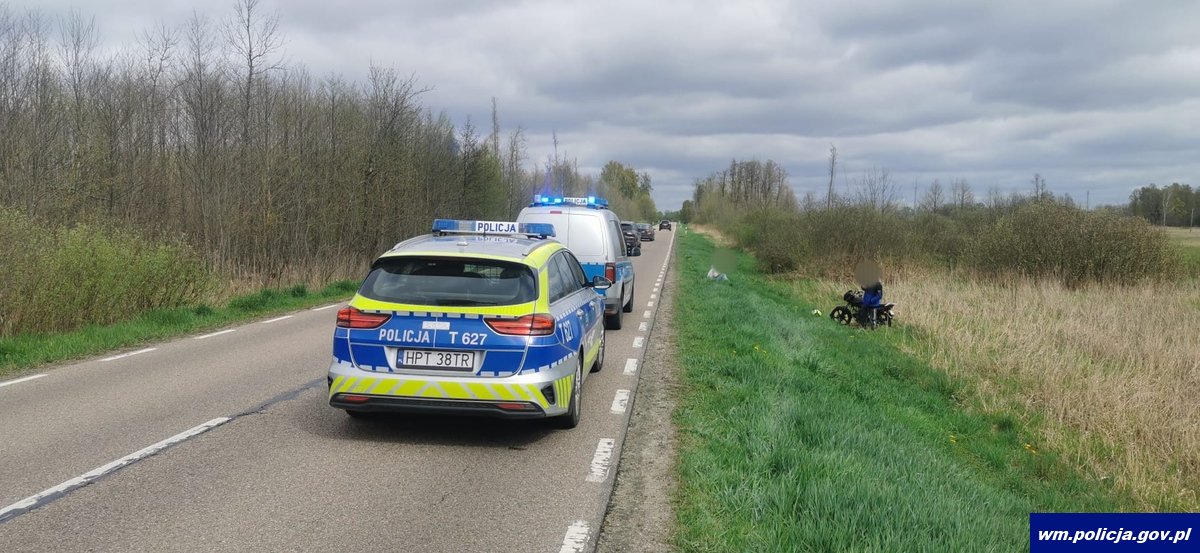 Tego samego dnia przed godz. 11:00 na drodze krajowej nr 16 w miejscowości Woźnice doszło do kolejnego groźnie wyglądającego zdarzenia drogowego z udziałem motorowerzysty. Funkcjonariusze po dotarciu na miejsce ustalili, że 31-letni mieszkaniec Mikołajek jadący z pasażerką źle się poczuł, na skutek czego stracił panowanie nad pojazdem i wjechał do przydrożnego rowu. Na szczęście nikt nie wymagał hospitalizacji i nie doznał poważnych obrażeń.