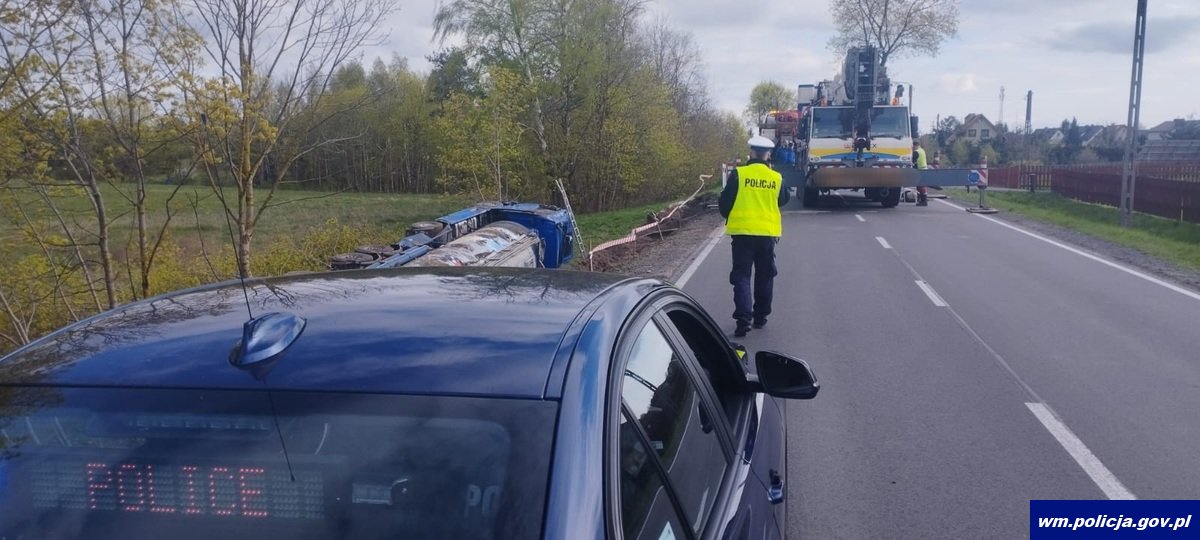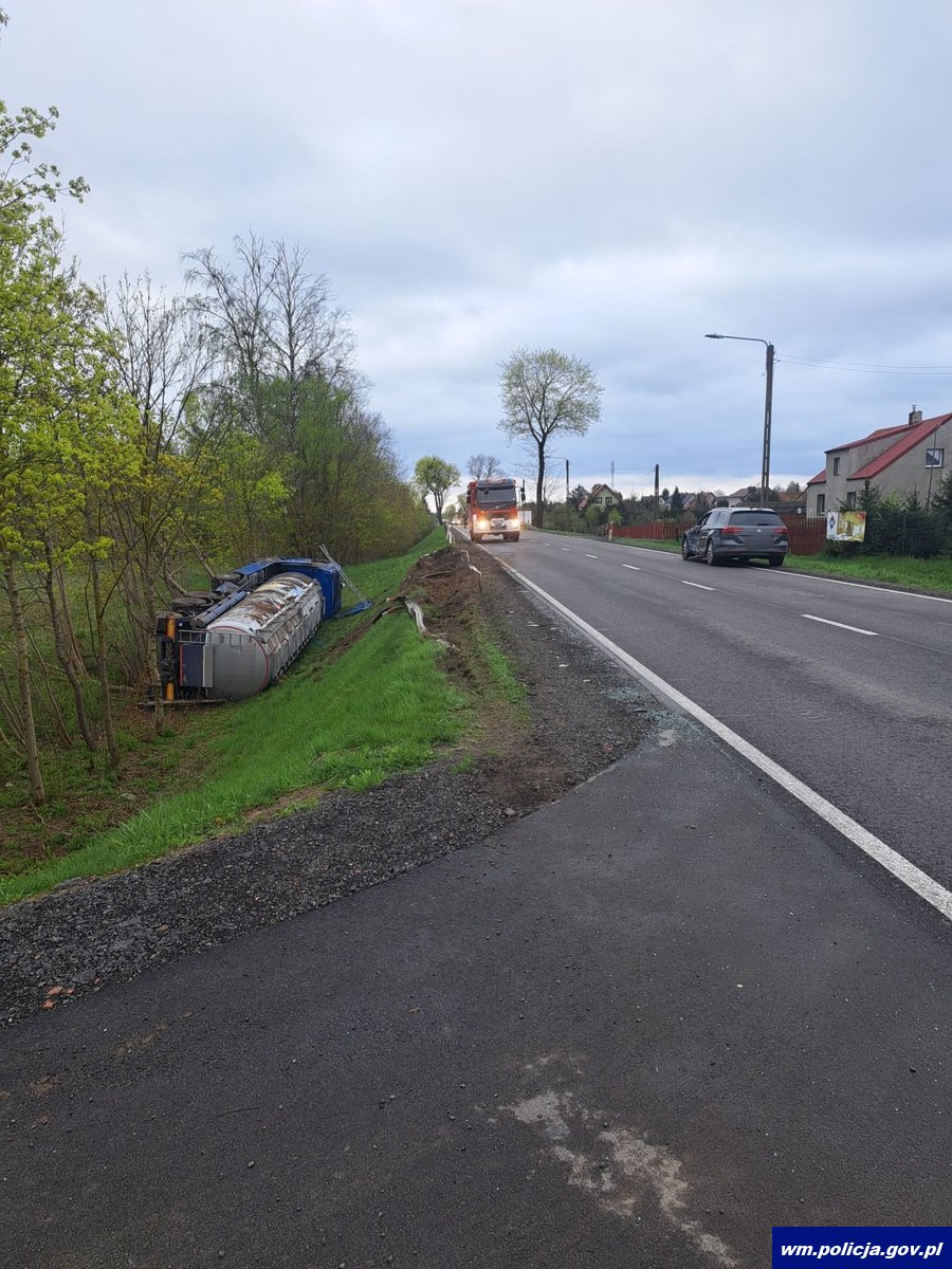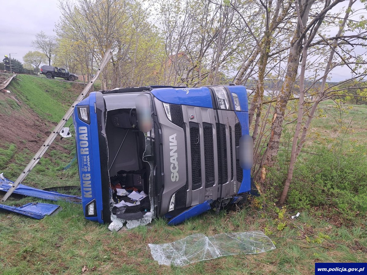 W piątek (12.04.2024 r.) po godzinie 20:00, 43-latek kierujący iveco na prostym odcinku drogi podczas wykonywania manewru wymijania zjechał na prawe pobocze, gdzie przewożonym kontenerem uderzył w drzewo w następstwie czego, kontener wypadł z pojazdu i uderzył w mijającą go scanie. Na szczęście nikomu nic poważnego się nie stało, a sprawca zdarzenia drogowego został ukarany mandatem.