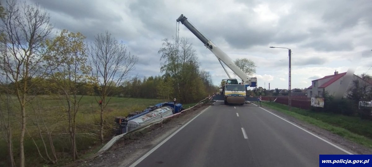 W sobotę (13.04.2024 r.) po godz. 4:00 na stanowisko dowodzenia Komendy Powiatowej Policji w Mrągowie wpłynęła informacja o zderzeniu pojazdu ciężarowego z pojazdem osobowym, na skutek którego pojazd ciężarowy wjechał do rowu. Do zdarzenia doszło na drodze krajowej nr 59 w miejscowości Piecki. Niezwłocznie na miejsce skierował funkcjonariuszy, którzy zabezpieczyli miejsce i ustalali okoliczności tego zdarzenia. Ze wstępnych ustaleń policjantów i relacji uczestników wynika, że najprawdopodobniej kierujący pojazdem marki Volkswagen jadąc w kierunku Szczytna nie upewnił się co do możliwości prawidłowego wykonania manewru skrętu w lewo, w wyniku czego kierujący pojazdem ciężarowym marki Scania wykonując manewr wyprzedzania uderzył w lewy bok pojazdu wyprzedzanego, a następnie wjechał do przydrożnego rowu. W wyniku zdarzenia kierujący pojazdem ciężarowym z podejrzeniem urazu ręki został przewieziony przez będący na miejscu Zespół Ratownictwa Medycznego do szpitala, gdzie dyżurujący lekarz stwierdził u niego, obrażenia skutkujące naruszeniem czynności narządu ciała powyżej dni 7. Kierujący volkswagenem nie doznał poważnych obrażeń. Obaj kierujący byli trzeźwi. Podczas prowadzonych czynności ruch odbywał się wahadłowo. W godzinach popołudniowych na drodze krajowej nr 59 w Pieckach na ul. Zwycięstwa na kilka godzin ruch został w zablokowany, a podróżujący byli kierowani na objazdy. Wtedy na miejsce zdarzenia przybył specjalistyczny sprzęt, który postawił pojazd ciężarowy na koła, a następnie wydobył z rowu i odholował. Policjanci ustalają i wyjaśniają przyczyny tego zdarzenia oraz okoliczności w jakich do niego doszło.