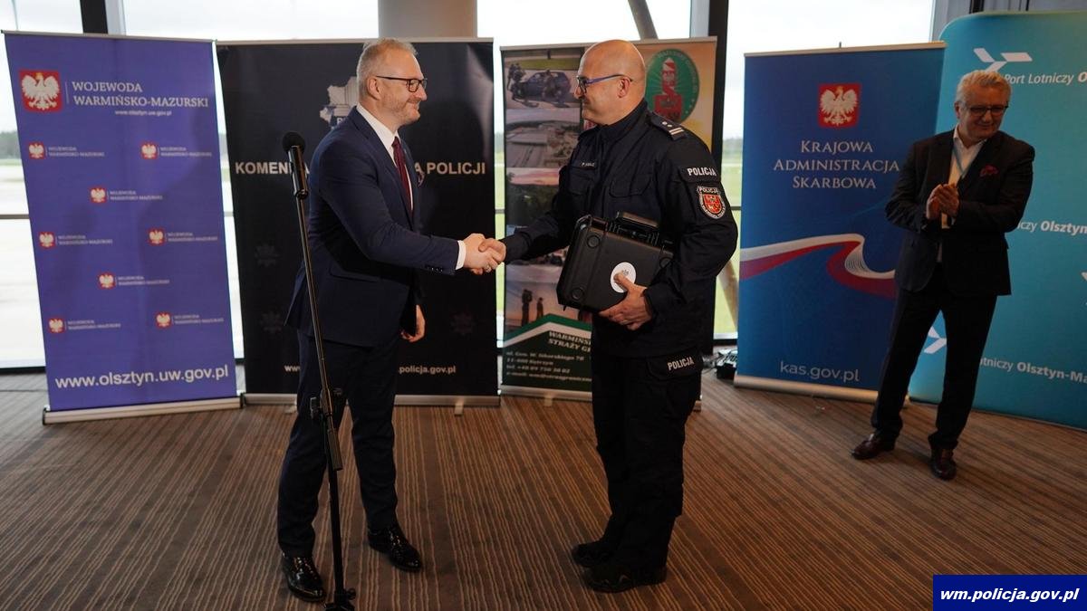 Podczas oficjalnego rozpoczęcia pokazów Wojewoda Warmińsko Mazurski na ręce Komendanta Wojewódzkiego Policji w Olsztynie przekazał walizkę z zapachami syntetycznymi środków zabronionych oraz materiałów wybuchowych, która wykorzystywana będzie podczas szkoleń.