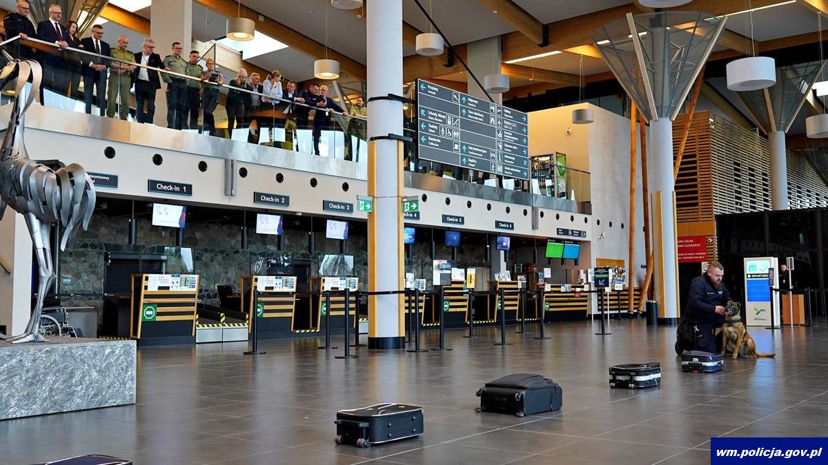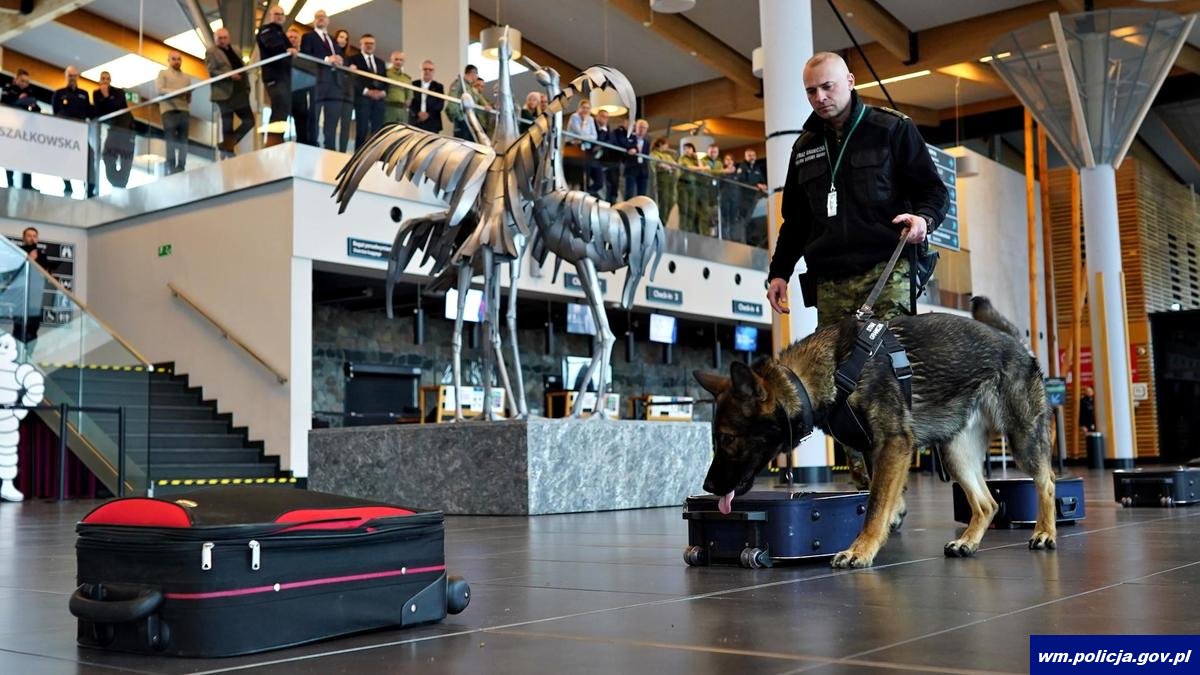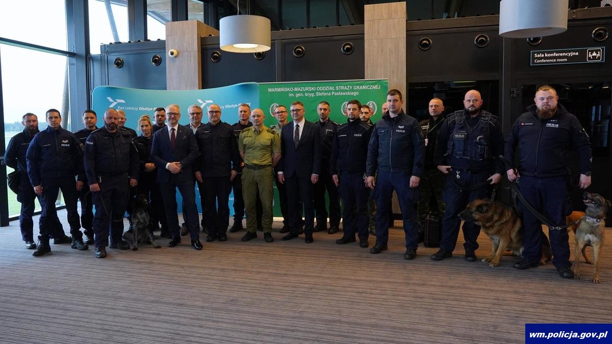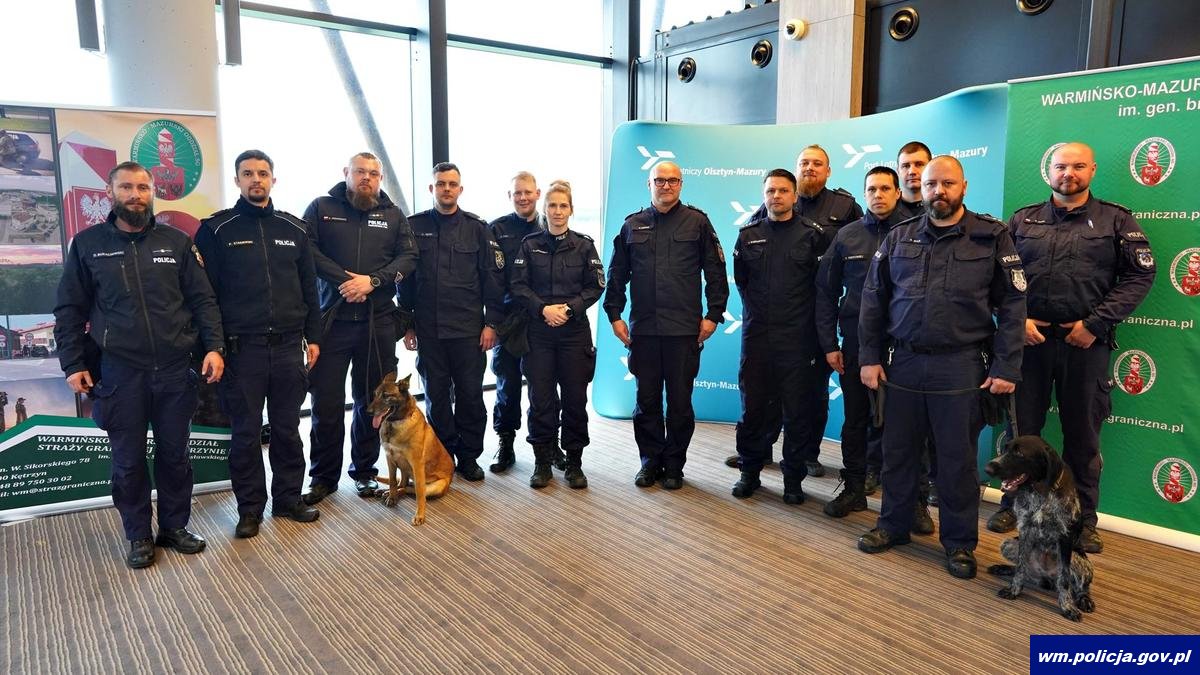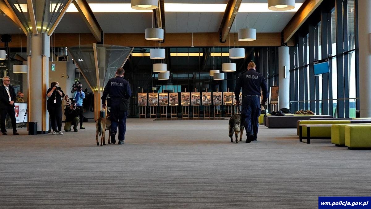 Na terenie Portu Lotniczego Olsztyn – Mazury przewodnicy psów służbowych doskonalili swoje umiejętności we współpracy ze swoimi psimi partnerami. W szkoleniu udział wzięli funkcjonariusze Policji, Straży Granicznej, oraz Służby Celno - Skarbowej. Ćwiczenia obserwowali m.in. Radosław Król - Wojewoda Warmińsko-Mazurski, mł. insp. Paweł Krauz - p.o. Komendant Wojewódzki Policji w Olsztynie, gen. bryg. SG Tomasz Zybiński - Komendant Warmińsko-Mazurskiego Oddziału Straży Granicznej w Kętrzynie, Jarosław Orłowski - Dyrektor Izby Administracji Skarbowej w Olsztynie, Wiktor Wójcik Prezes Zarządu Portu Lotniczego Olsztyn - Mazury.