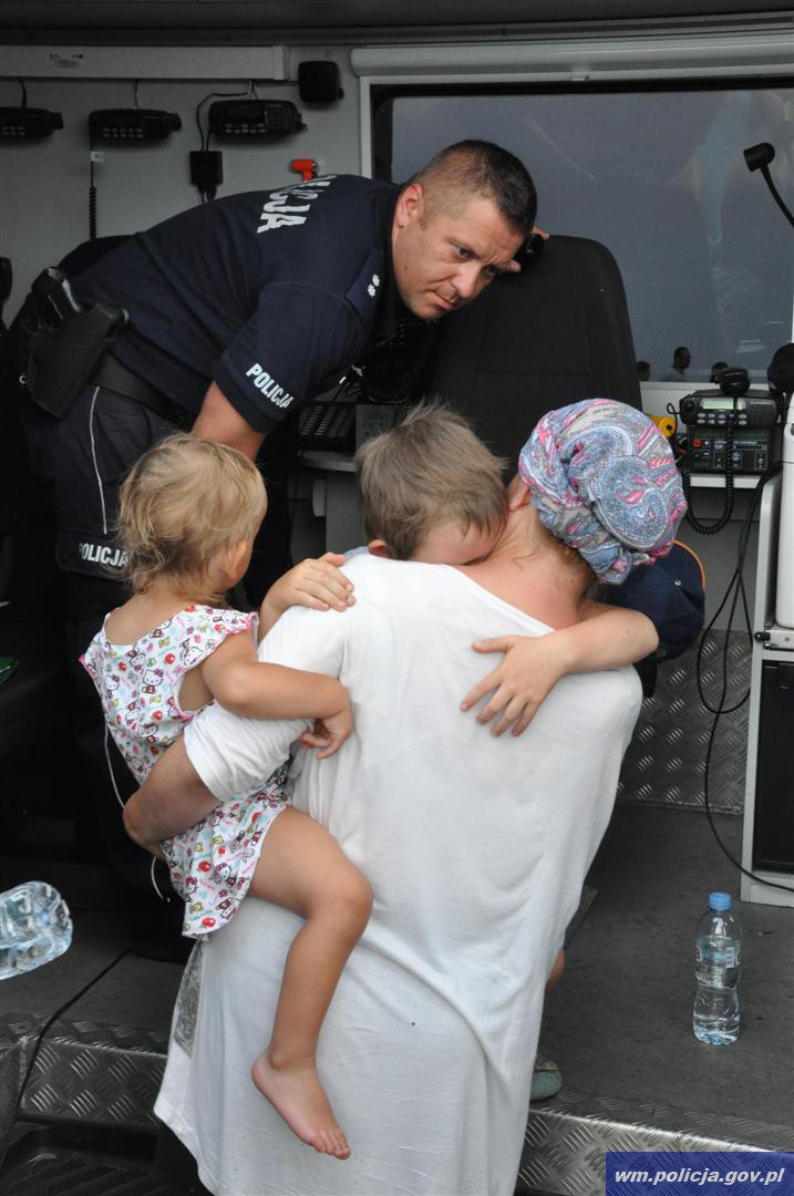 Szczęśliwie skończyła sie też przygoda 5-letniego Janka, który zgubił się w tłumie kiedy razem z rodziną próbował się schronić przed nagłą burzą, jaka pojawiłą się nad bitewnymi polami. Uciekając przed ulewnym deszczem chłopiec stracił kontakt z mamą i siostrą. Policjanci we współpracy z organizatorem inscenizacji regularnie informowali publiczność, że w przypadku takiej sytuacji po pomoc należy przyjść do policyjnego punku ustawionego w pobliży grunwaldzkiego pomnika szukać. Zagubionego chłpca zauważyli funckjonariusze Żandarmerii Wojskowej i przyprowadzii go do policyjnego punktu. Dzięki szybkiej reakcji funkcjonariuszy, którzy ustalili dane osobowe Janka, 5-latek wkrótce bezpiecznie wrócił pod opiekę rodziny. Chłopiec czekając na rodziców był bardzo odważny i w rozmowie z policjantami przyznał, że też w przyszłości chciałby zostać policjantem.