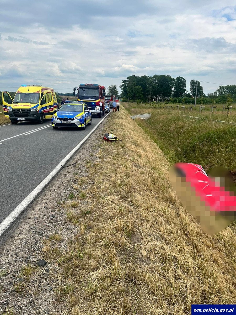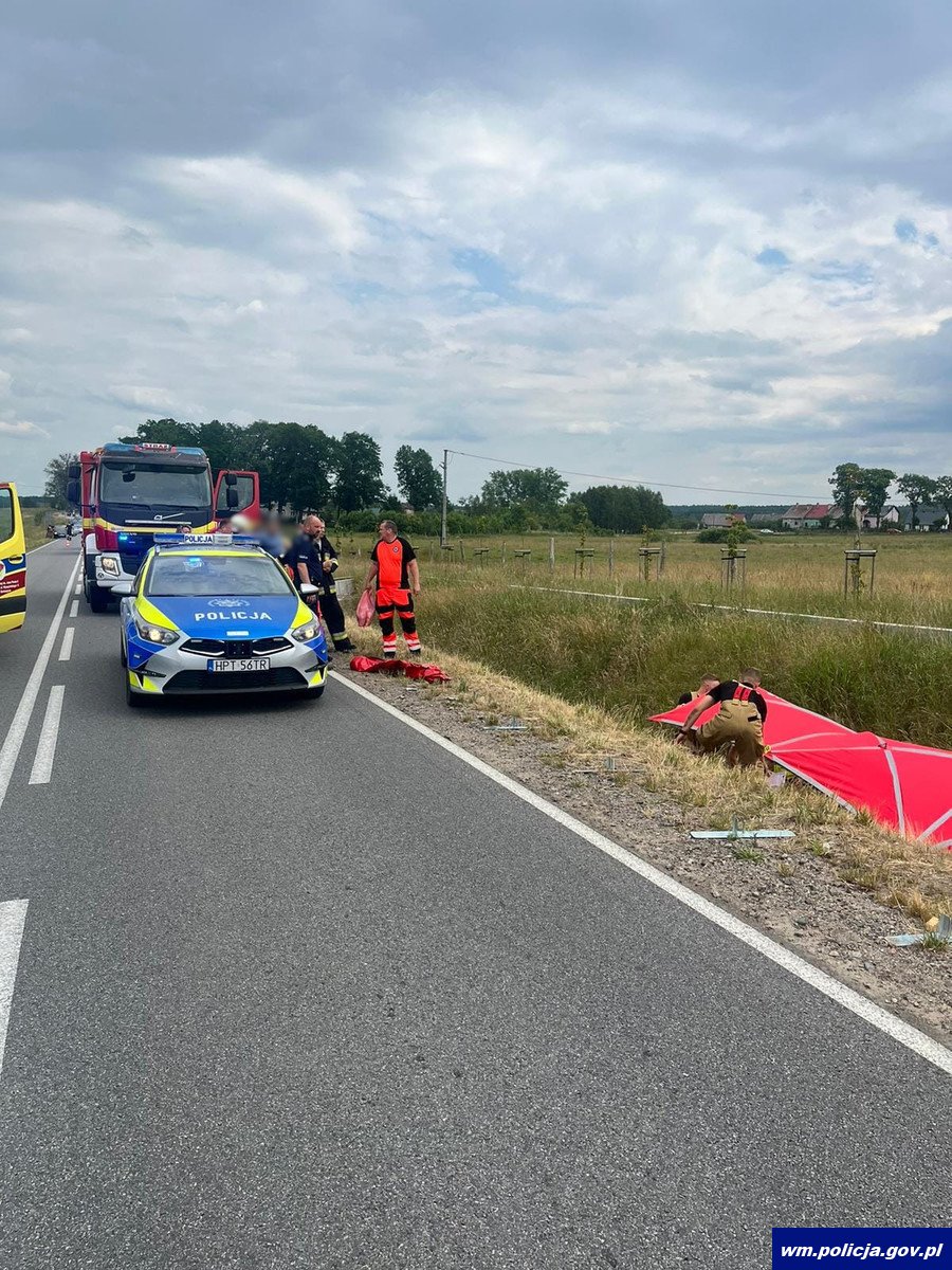 Tego samego dnia (16.06.2024 r.) przed godz. 12:00 na trasie Górowo Iławeckie - Wągródka policjanci interweniowali w związku ze zdarzeniem drogowym z udziałem motocyklisty. Ze wstępnych ustaleń policjantów pracujących na miejscu wypadku pod nadzorem prokuratora wynika, że 56-letni motocyklista na łuku drogi wyprzedzał osobówkę, a gdy wracał na swój pas ruchu, z naprzeciwka nadjechało auto, na widok którego mężczyzna stracił panowanie nad motocyklem i wjechał do rowu. Pomimo udzielonej pomocy zmarł na miejscu zdarzenia. Policjanci wykonali oględziny, przesłuchali świadków, zabezpieczyli yamahę na parkingu strzeżonym. Ciało 56-latka na polecenie prokuratora zabezpieczono do prosektorium. Śledztwo wyjaśni wszelkie okoliczności tego tragicznego wypadku.