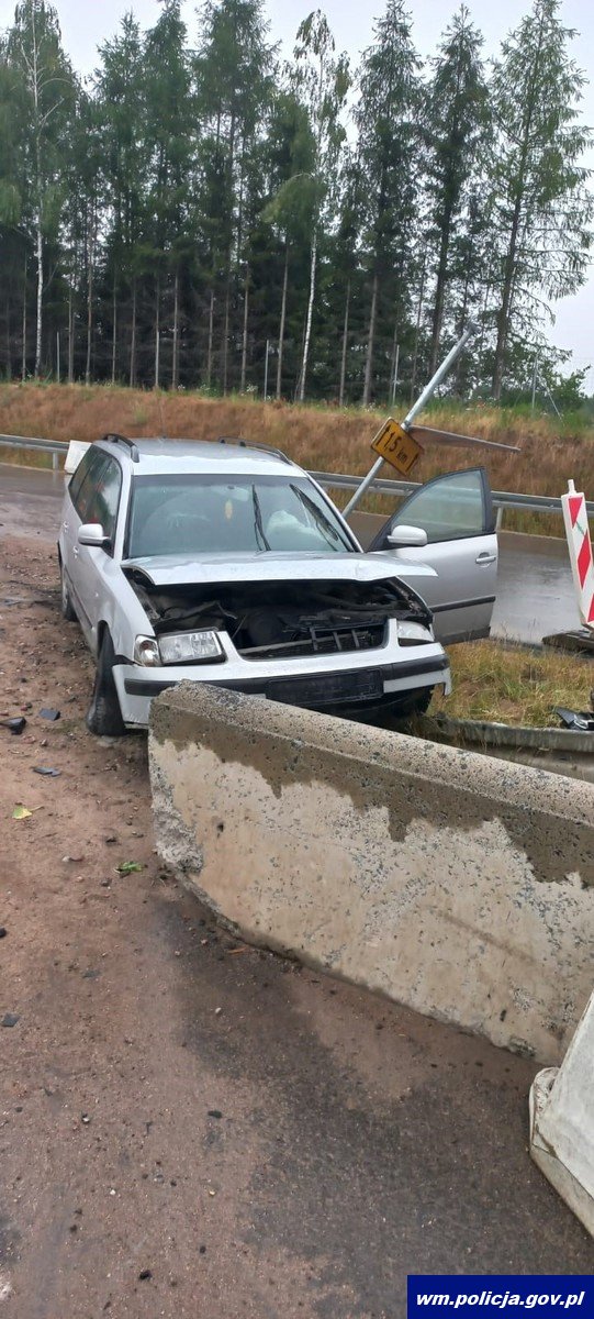 W sobotę (22.06.2024 r.) po godz. 9:00 oficer dyżurny mrągowskiej Policji został poinformowany o zdarzeniu drogowym do jakiego doszło w Sorkwitach. Funkcjonariusze, którzy przyjechali na miejsce zdarzenia ustalili, że 44-letnia kierująca volkswagenem, jadąc z pasażerem, na łuku drogi w prawo nie dostosowała prędkości do warunków panujących na drodze, na skutek czego zjechała na przeciwległy pas ruchu, a następnie uderzyła w betonowe bariery ochronne oraz znak drogowy. Mimo groźnie wyglądającego zdarzenia nikomu nic się nie stało, a nieostrożna kierująca została ukarana mandatem w wysokości 1500 zł.