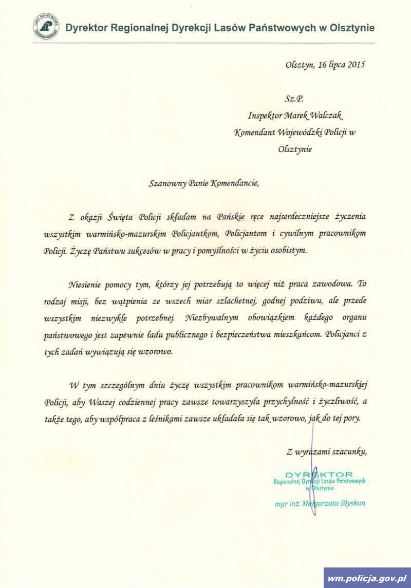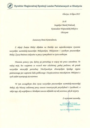 Życzenia od Pani Małgorzaty Błyskun Dyrektor Regionalnej Dyrekcji Lasów Państwowych w Olsztynie