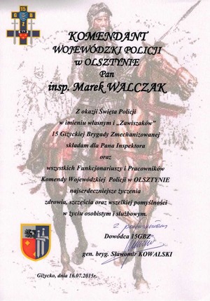 Życzenia od gen. bryg. Sławomira Kowalskiego Dowódcy 15 GBZ -
