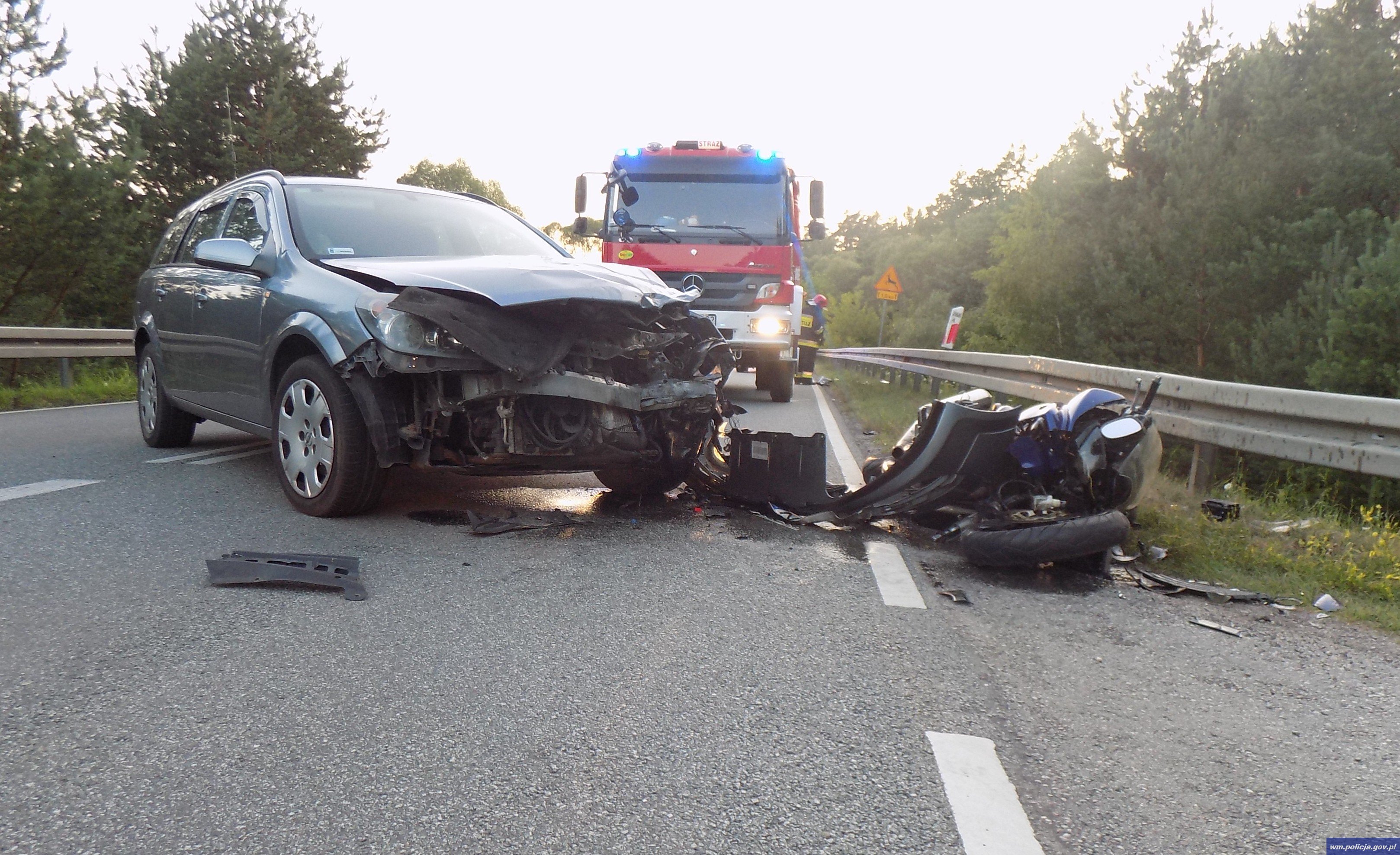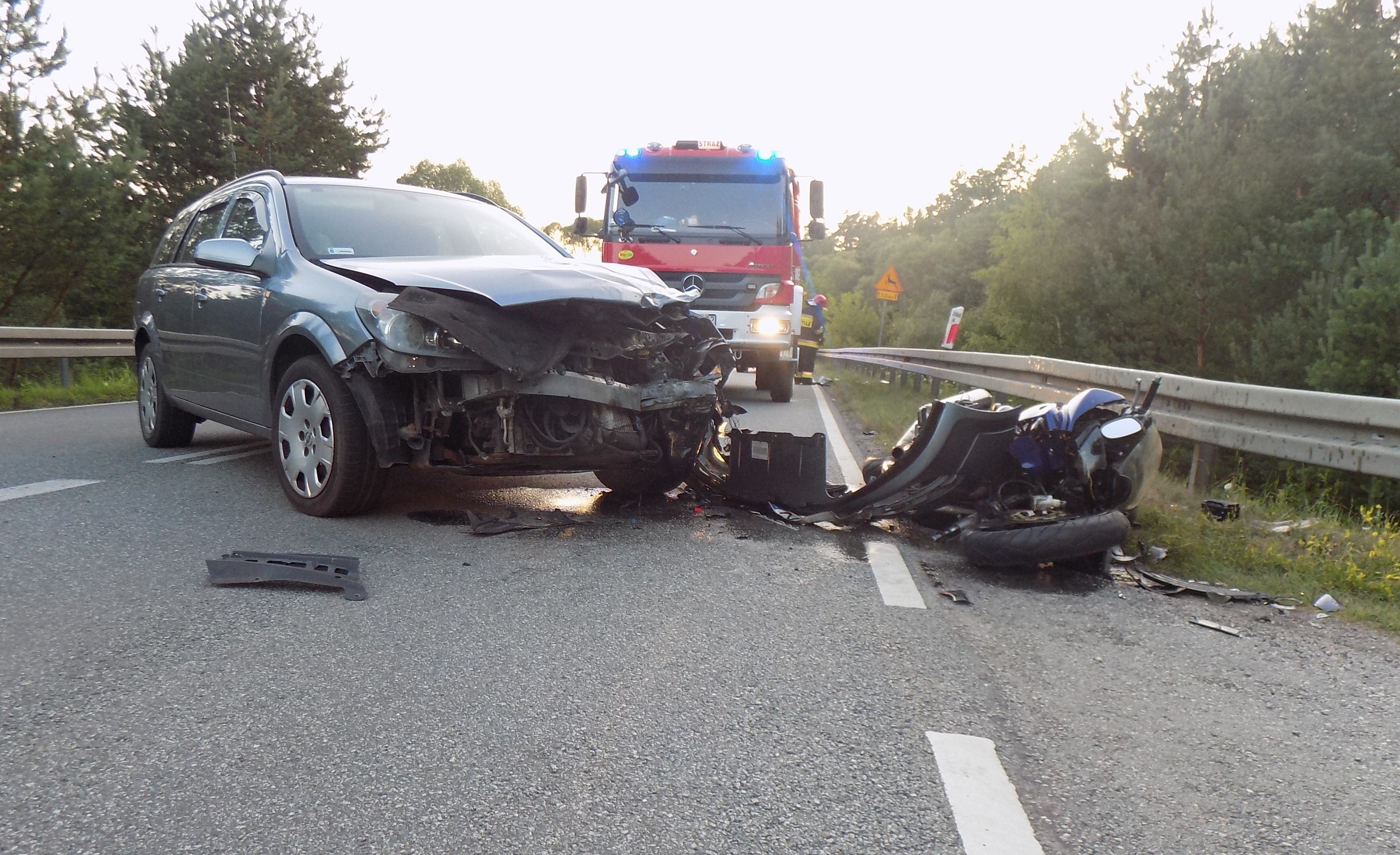 Pisz: Zderzenie samochodu osobowego z motocyklem na krajowej „szesnastce”