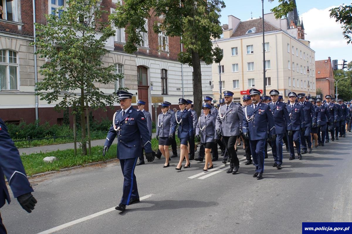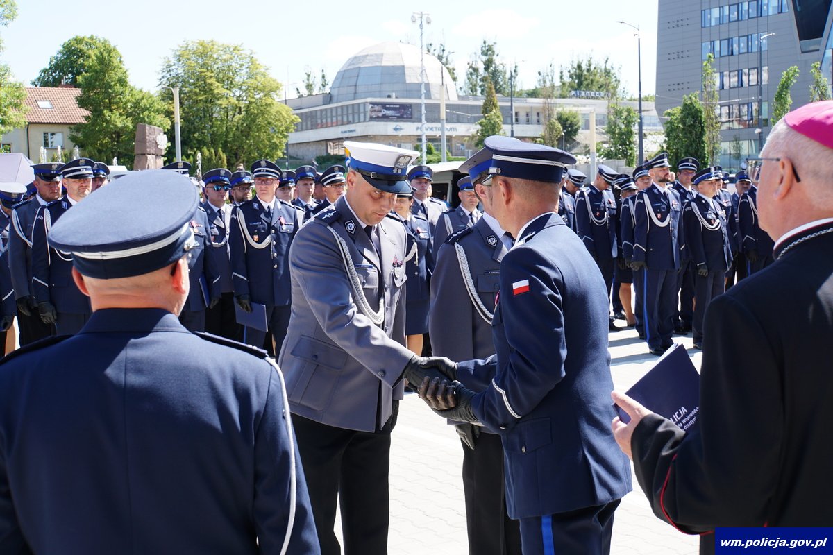 W tym roku wojewódzkie obchody Święta Policji garnizonu warmińsko-mazurskiego wróciły do powiatu olsztyńskiego. Wydarzenie zostało zorganizowane wspólnymi siłami Komendy Miejskiej Policji w Olsztynie oraz Komendy Wojewódzkiej Policji w Olsztynie. W środę (31.07.2024) tuż po południu na Placu Solidarności w Olsztynie zgromadzili się policjanci, ich rodziny, zaproszeni goście, mieszkańcy miasta oraz turyści przebywający w nim w tym czasie. Jednak zanim uroczystość przeniosła się w to miejsce, tradycyjnie poprzedziła ją msza, którą w Kościele pw. Najświętszego Serca Pana Jezusa odprawił Arcybiskup Metropolita Warmiński Józef Górzyński.