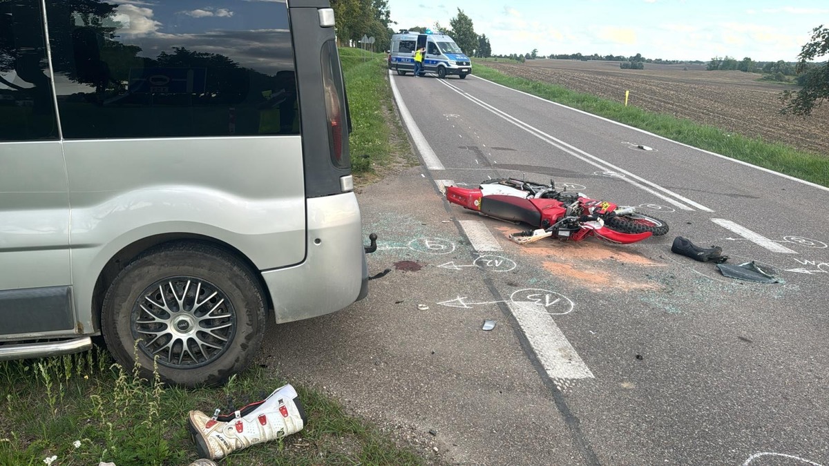 Również w sobotę (10.08.2024 r.) około godz. 16:00 oficer dyżurny kętrzyńskich policjantów otrzymał zgłoszenie, że na drodze wojewódzkiej W592 trasa Kętrzyn-Bartoszyce na wysokości miejscowości Garbno w gminie Korsze doszło do zderzenie motocykla z busem. Z przekazanych informacji wynikało, że dwie osoby są poszkodowane. Na miejsce natychmiast zostały wysłane służby ratunkowe. Ze wstępnych ustaleń policjantów wynika, że kierujący Renault, 28-letni mieszkaniec powiatu bartoszyckiego wykonując manewr skrętu w lewo, wymusił pierwszeństwo przejazdu prawidłowo nadjeżdżającemu z naprzeciwka motocykliście. W wyniku zderzenia pojazdów 41-latek oraz 12-letni pasażer Hondy z obrażeniami ciała zostali przetransportowani do szpitali. Kierowca Renault był trzeźwy.