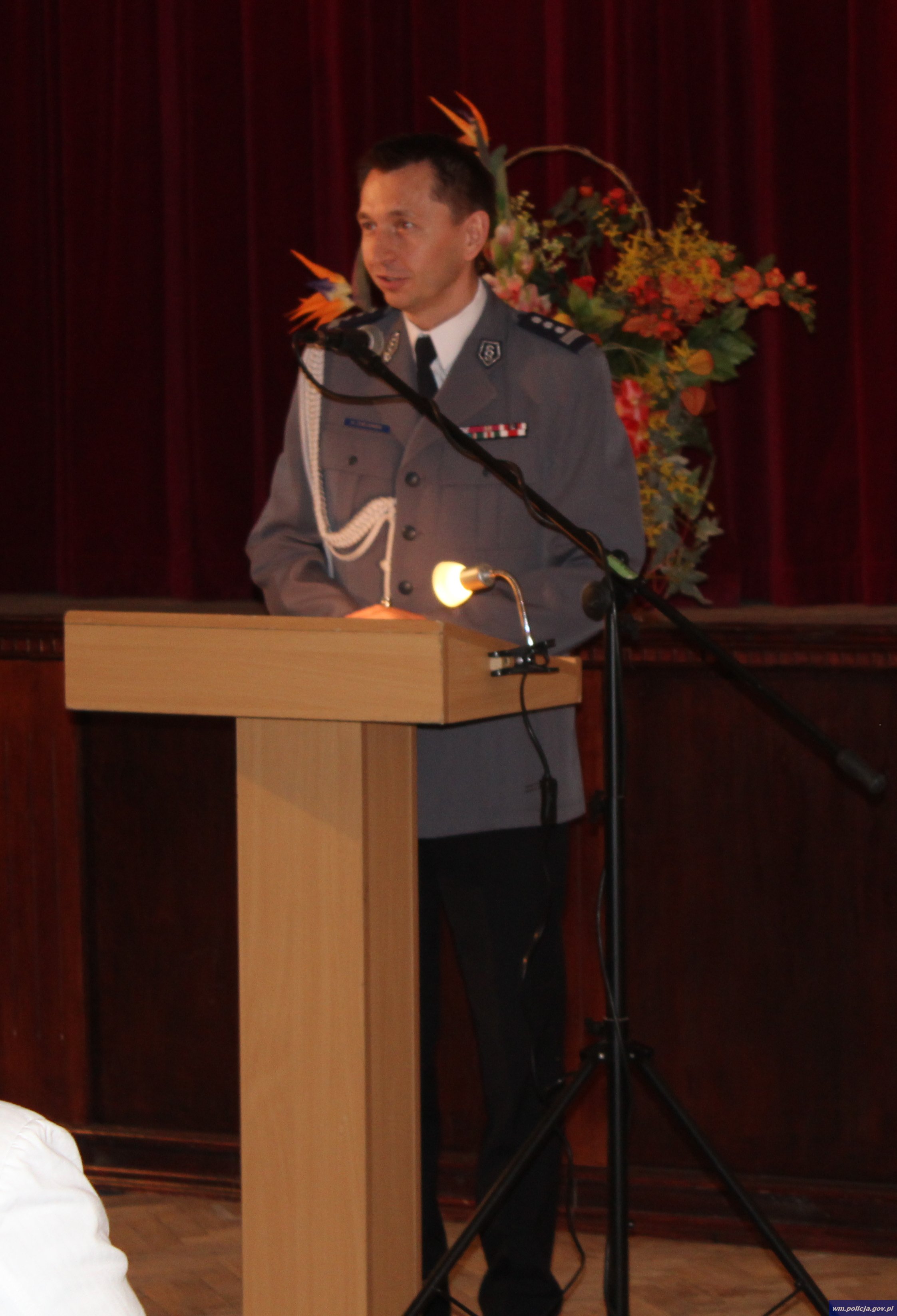 mł.insp. Andrzej Zielonka składający życzenia i gratulacje awansowanym -